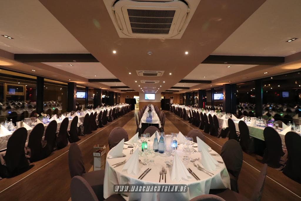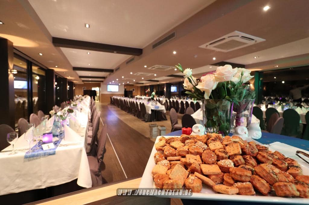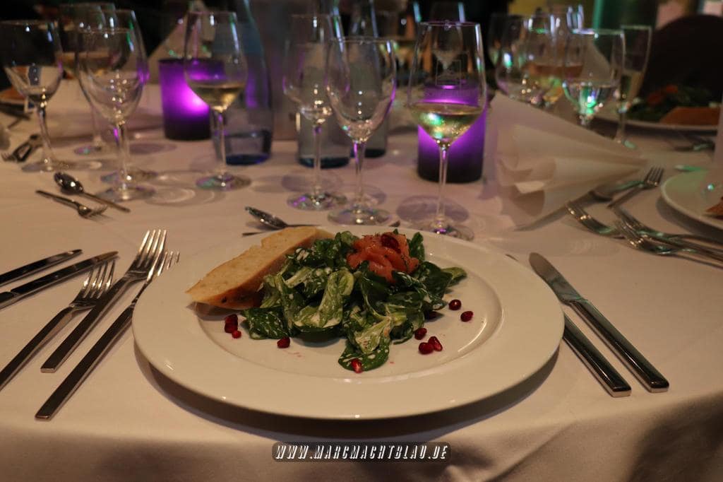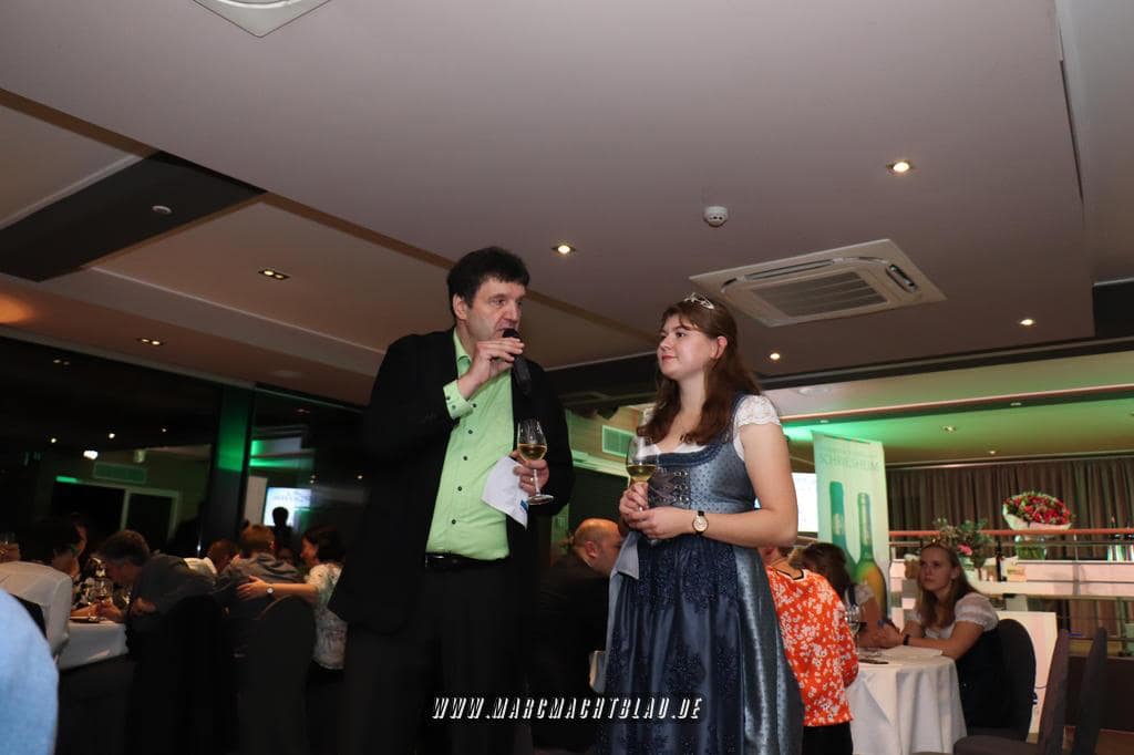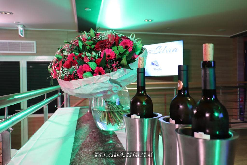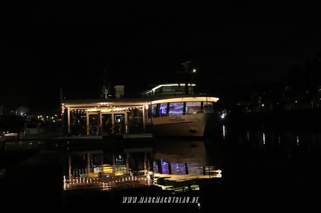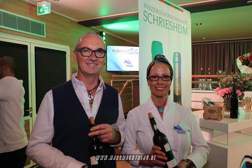 Schiff Ahoi! Mit “Königin Silvia” auf der Geschmacks-Exkursion auf dem Neckar. Die Weisse Flotte und die Winzergenossenschaft Schriesheim durften dieses Jahr ein Jubiläum feiern, 5 Jahre Weinschiff! Die Kombination aus Neckarschifffahrt, gutem Essen und passenden Weinen der Winzergenossenschaft Schriesheim kam auch dieses Jahr bei 180 Gästen sehr gut an. Das hinter so einer Veranstaltung wie dem Weinschiff sehr viel Arbeit und Arrangement steckt kann man sich denken. Und diese Arbeit machte sich bezahlt. Die Gäste und wir waren rundum zu Frieden. Die WG passte Ihre Weine perfekt auf das angebotene Menü an und das lobten die Gäste. Das Essen selbst war ebenfalls sehr gut, auch wenn es nicht möglich war in einer kleinen Boardküche 180 Teller auf einmal fertig zu machen.