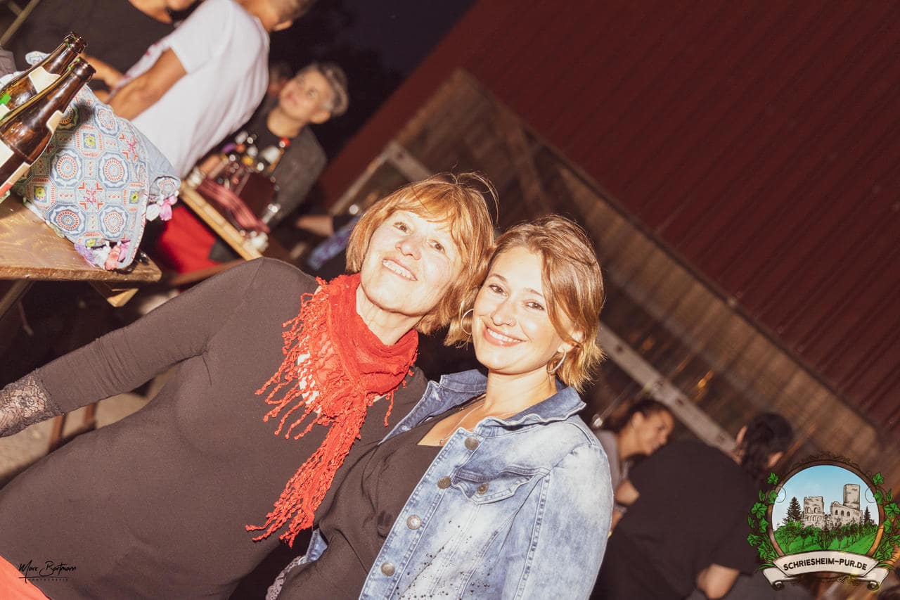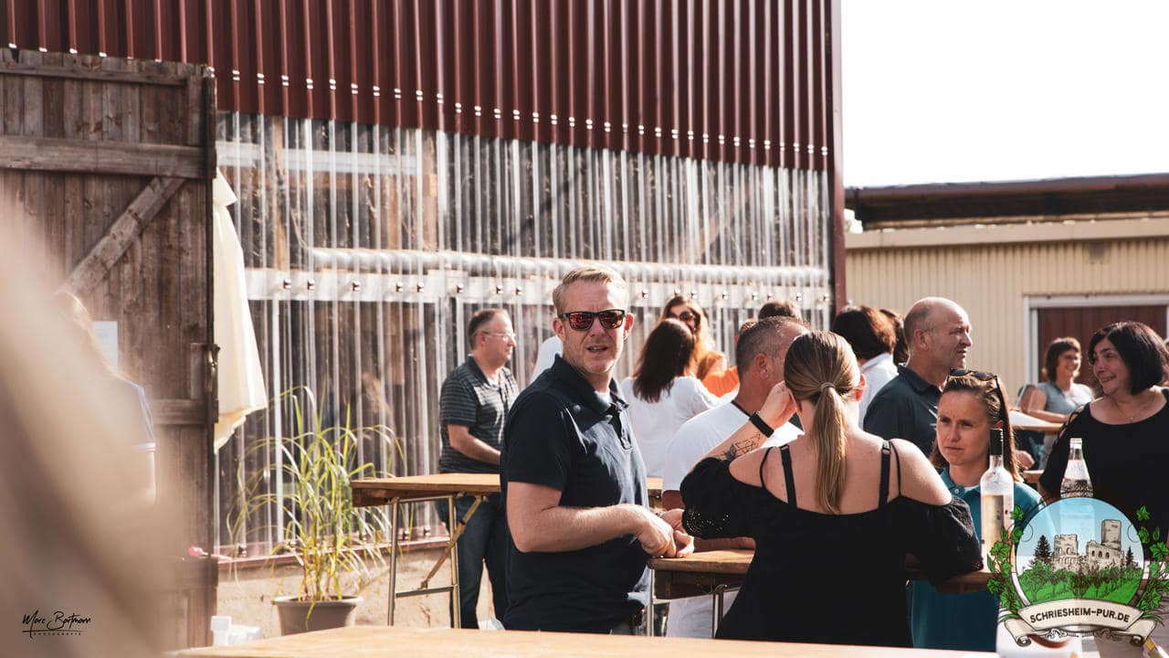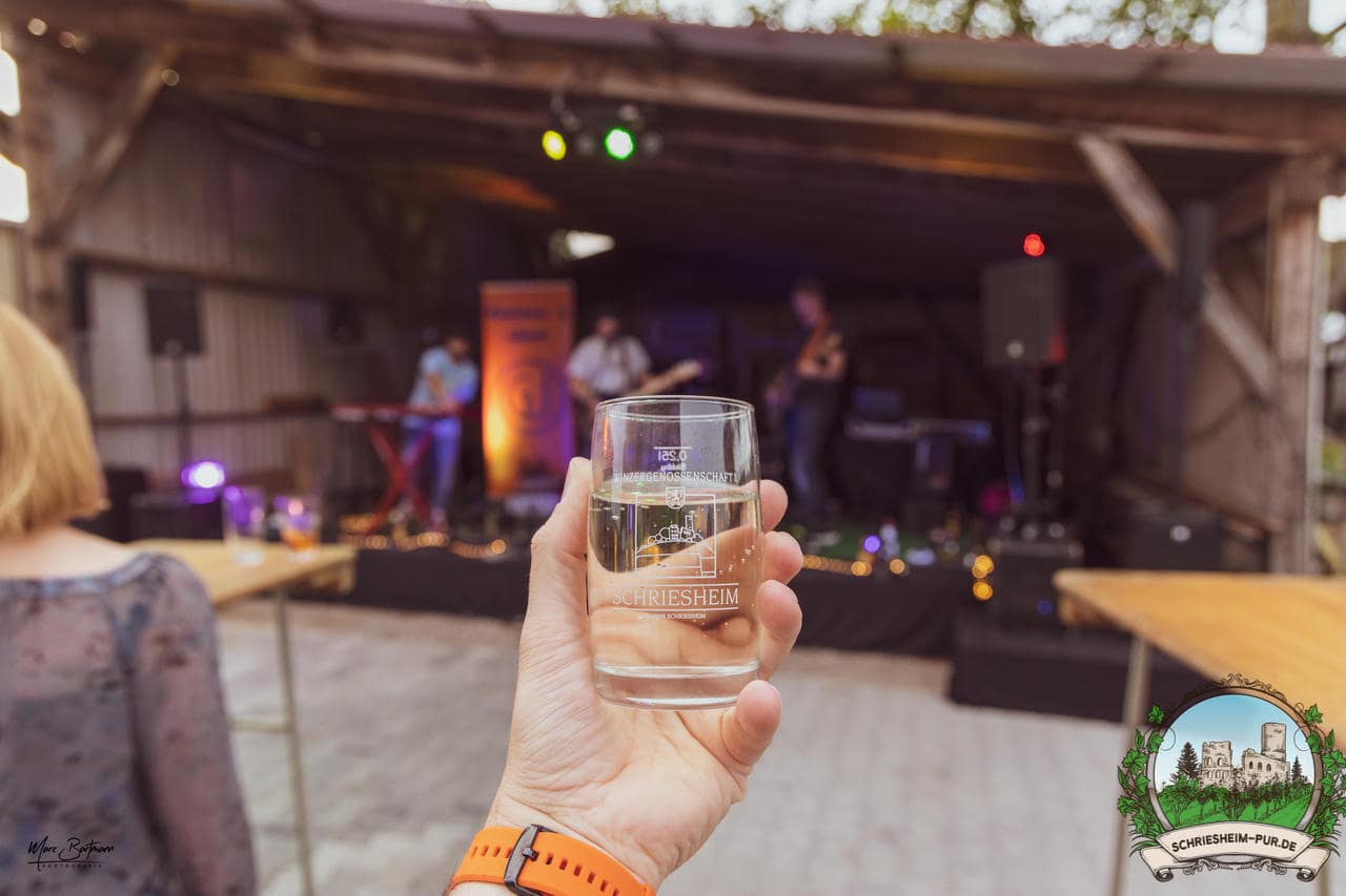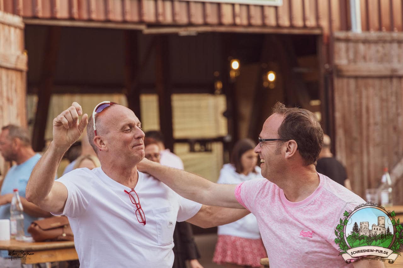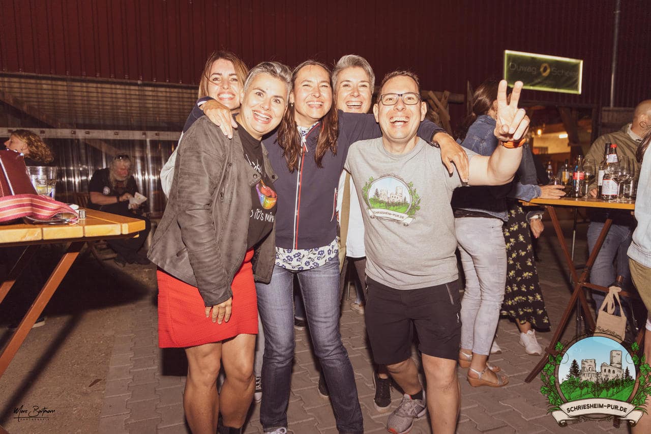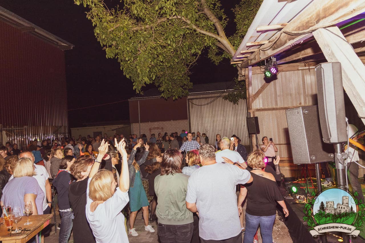 Rund 230 Besucher machten sich auf zum Obsthof Spieß zum Feiern und genießen. Natürlich unter der Einhaltung der drei G´s. Genesen, getestet oder geimpft. Und die Leute feierten ihre wieder erlangte Freiheit in vollen Zügen. Endlich einmal wieder Bekannte nach langer Zeit in den Arm nehmen und miteinander mit einem Schriesheimer Wein anstoßen. Was gibt es schöneres? Dazu gab es von der Firma “Gastro GmbH” leckere kleine Gerichte, so war gut für das Wohl gesorgt. Die Krönung des Ganzen war dann die Band “Gonzo´s Jam” die die Hütte rockten.