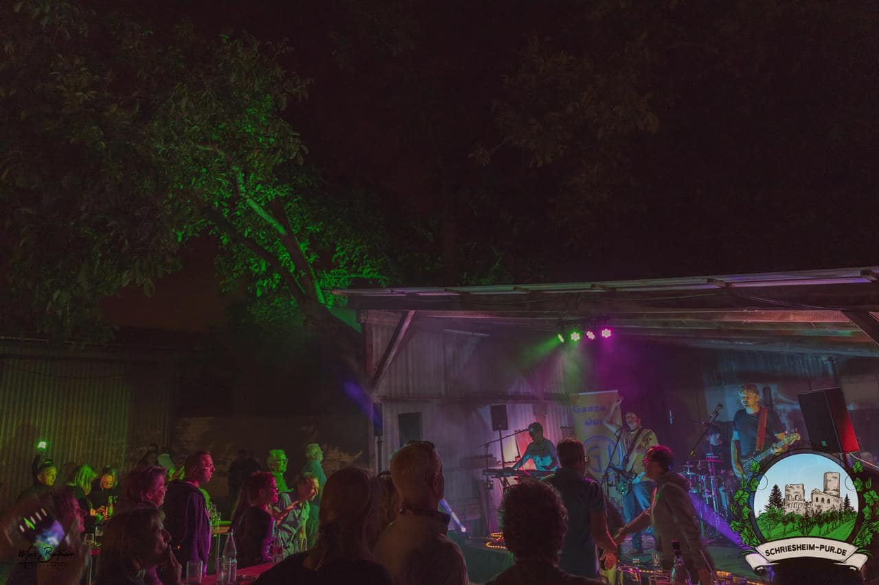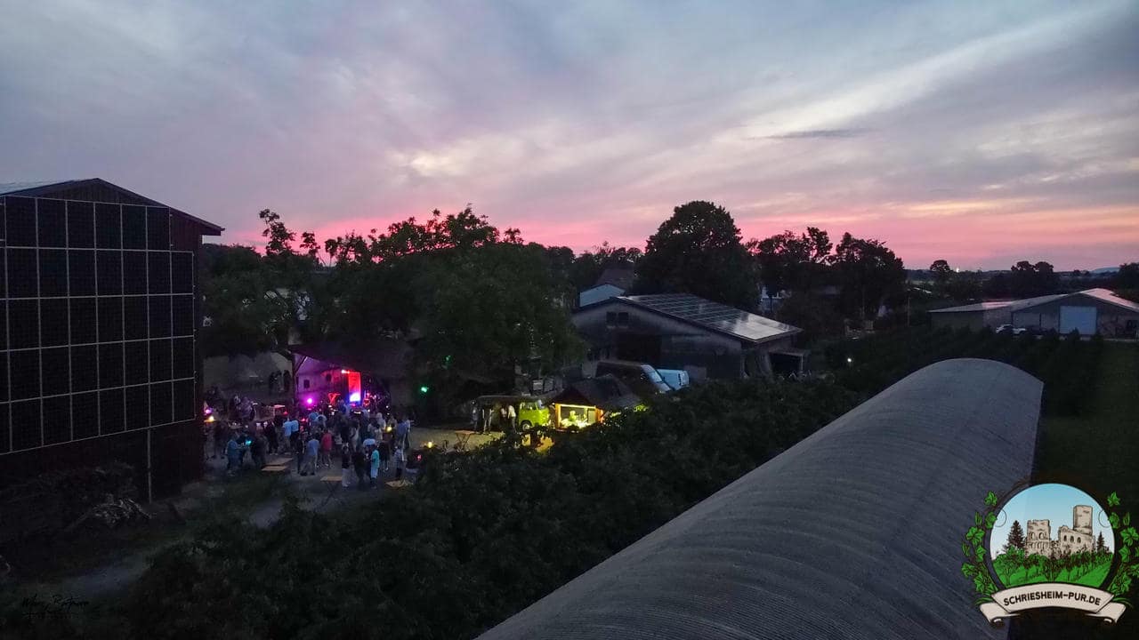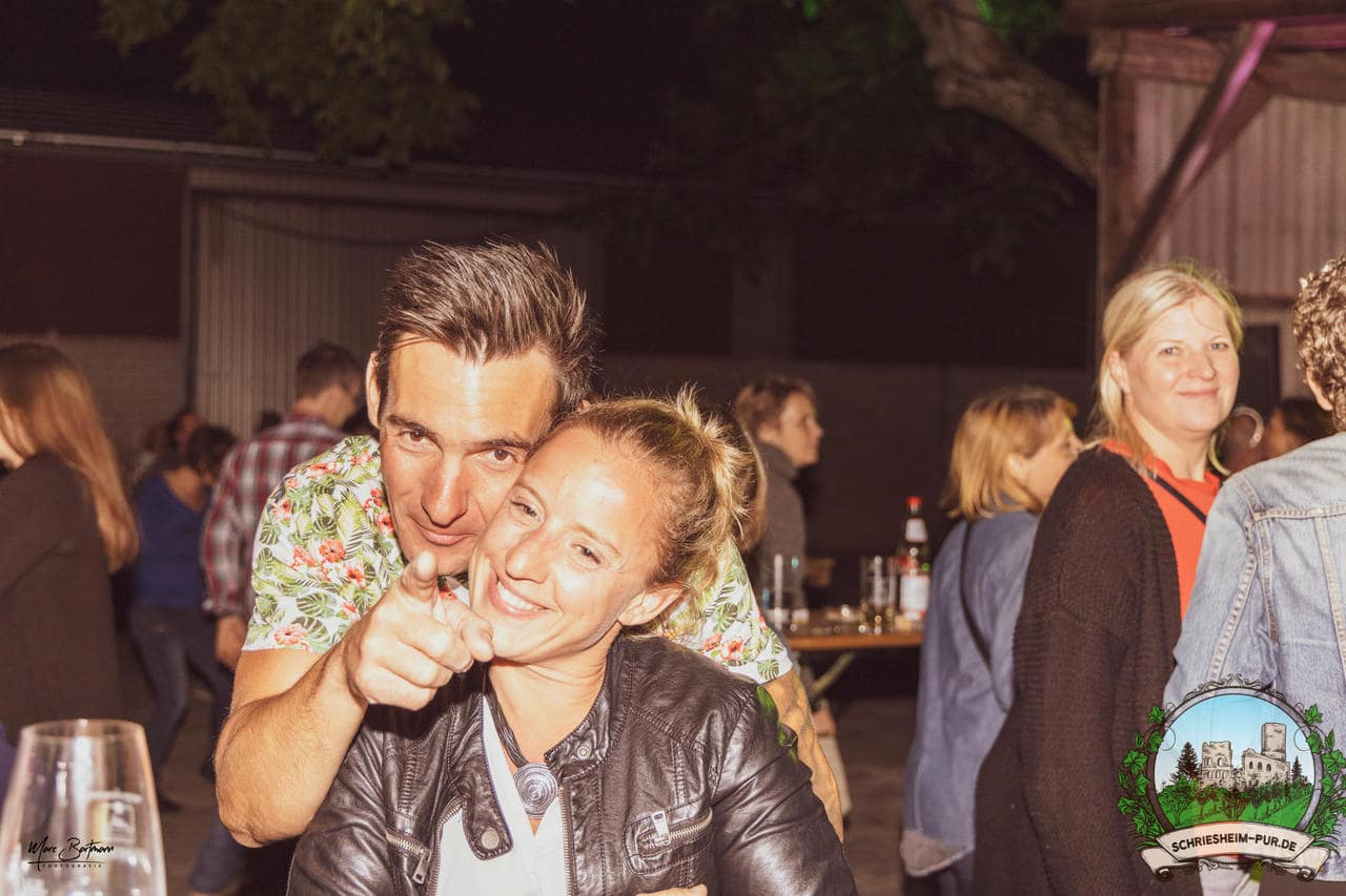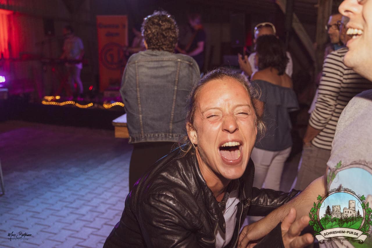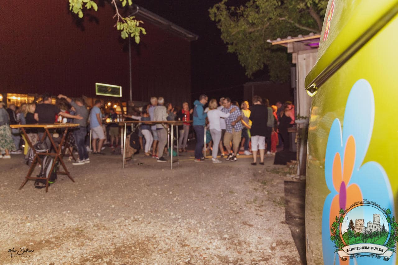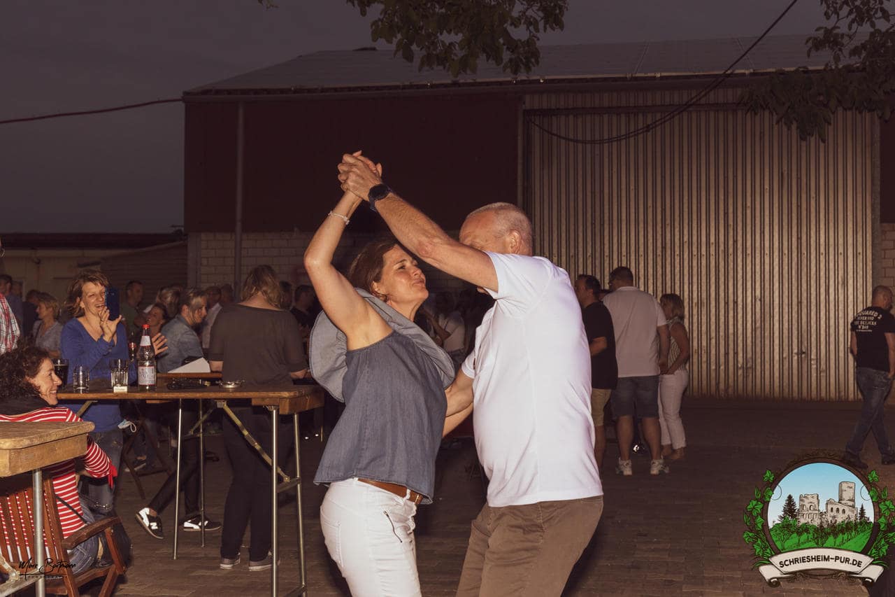 Rund 230 Besucher machten sich auf zum Obsthof Spieß zum Feiern und genießen. Natürlich unter der Einhaltung der drei G´s. Genesen, getestet oder geimpft. Und die Leute feierten ihre wieder erlangte Freiheit in vollen Zügen. Endlich einmal wieder Bekannte nach langer Zeit in den Arm nehmen und miteinander mit einem Schriesheimer Wein anstoßen. Was gibt es schöneres? Dazu gab es von der Firma “Gastro GmbH” leckere kleine Gerichte, so war gut für das Wohl gesorgt. Die Krönung des Ganzen war dann die Band “Gonzo´s Jam” die die Hütte rockten.