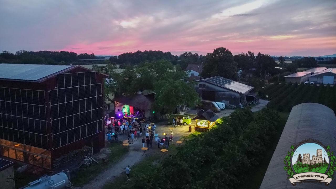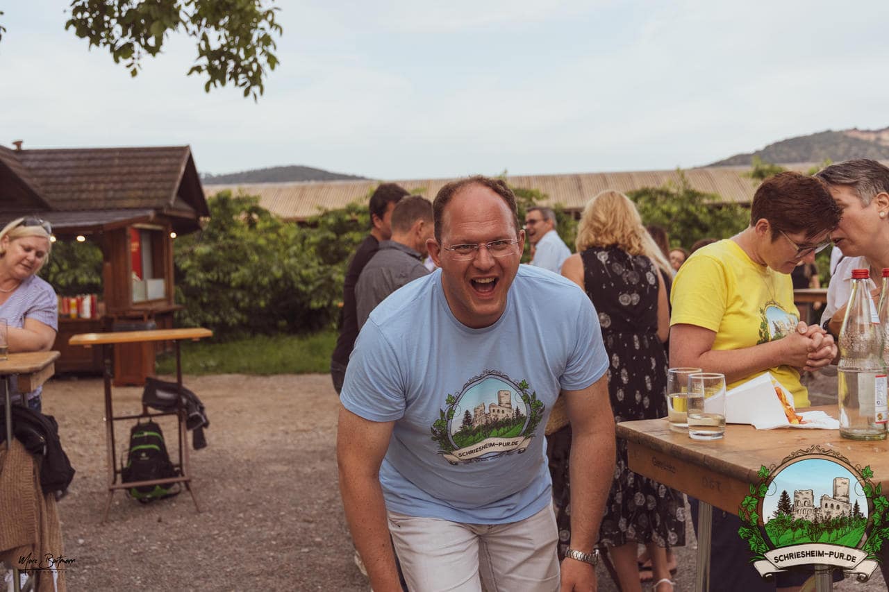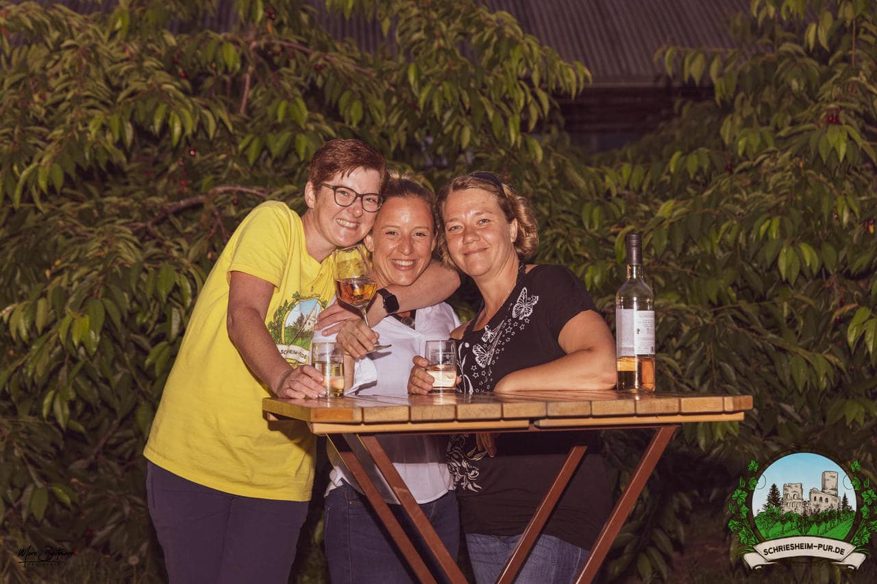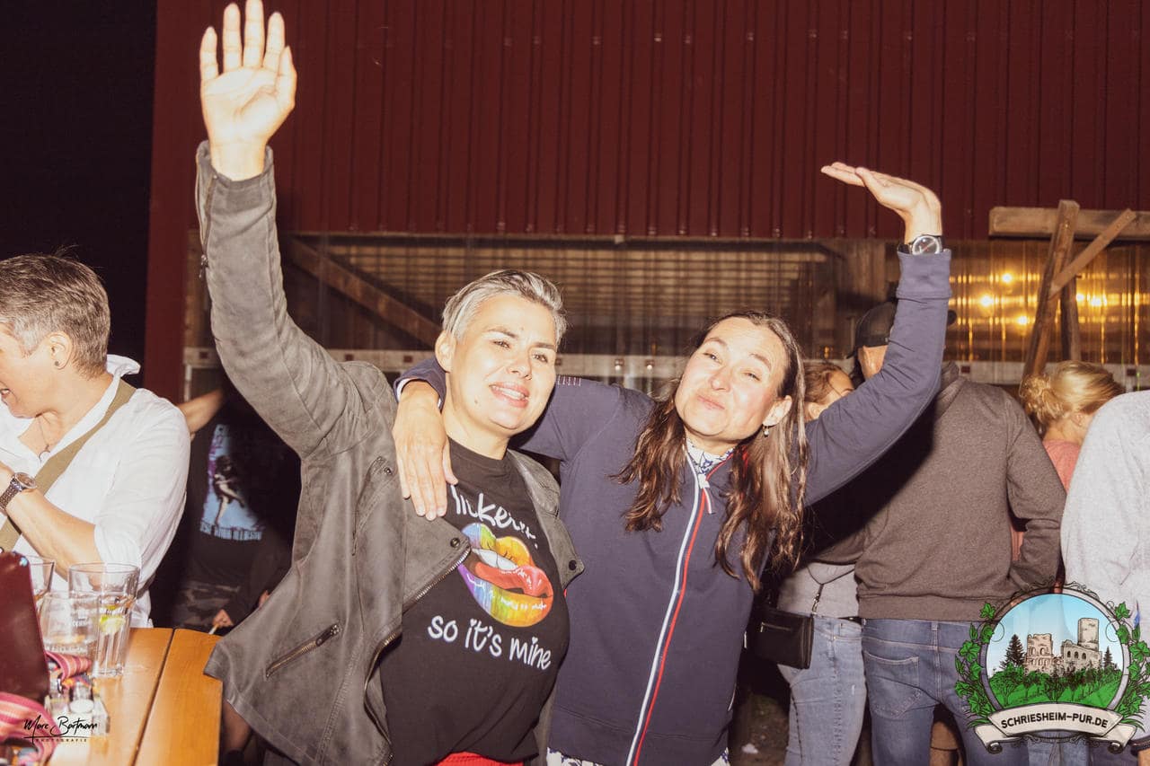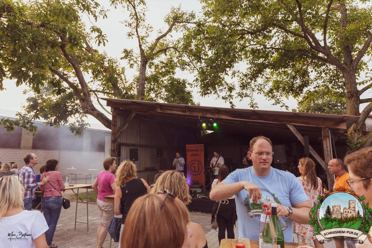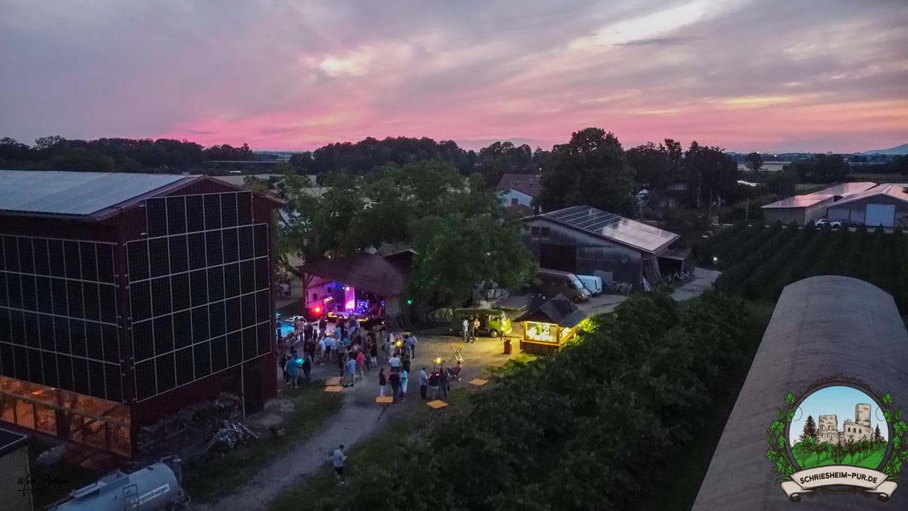 Rund 230 Besucher machten sich auf zum Obsthof Spieß zum Feiern und genießen. Natürlich unter der Einhaltung der drei G´s. Genesen, getestet oder geimpft. Und die Leute feierten ihre wieder erlangte Freiheit in vollen Zügen. Endlich einmal wieder Bekannte nach langer Zeit in den Arm nehmen und miteinander mit einem Schriesheimer Wein anstoßen. Was gibt es schöneres? Dazu gab es von der Firma “Gastro GmbH” leckere kleine Gerichte, so war gut für das Wohl gesorgt. Die Krönung des Ganzen war dann die Band “Gonzo´s Jam” die die Hütte rockten.