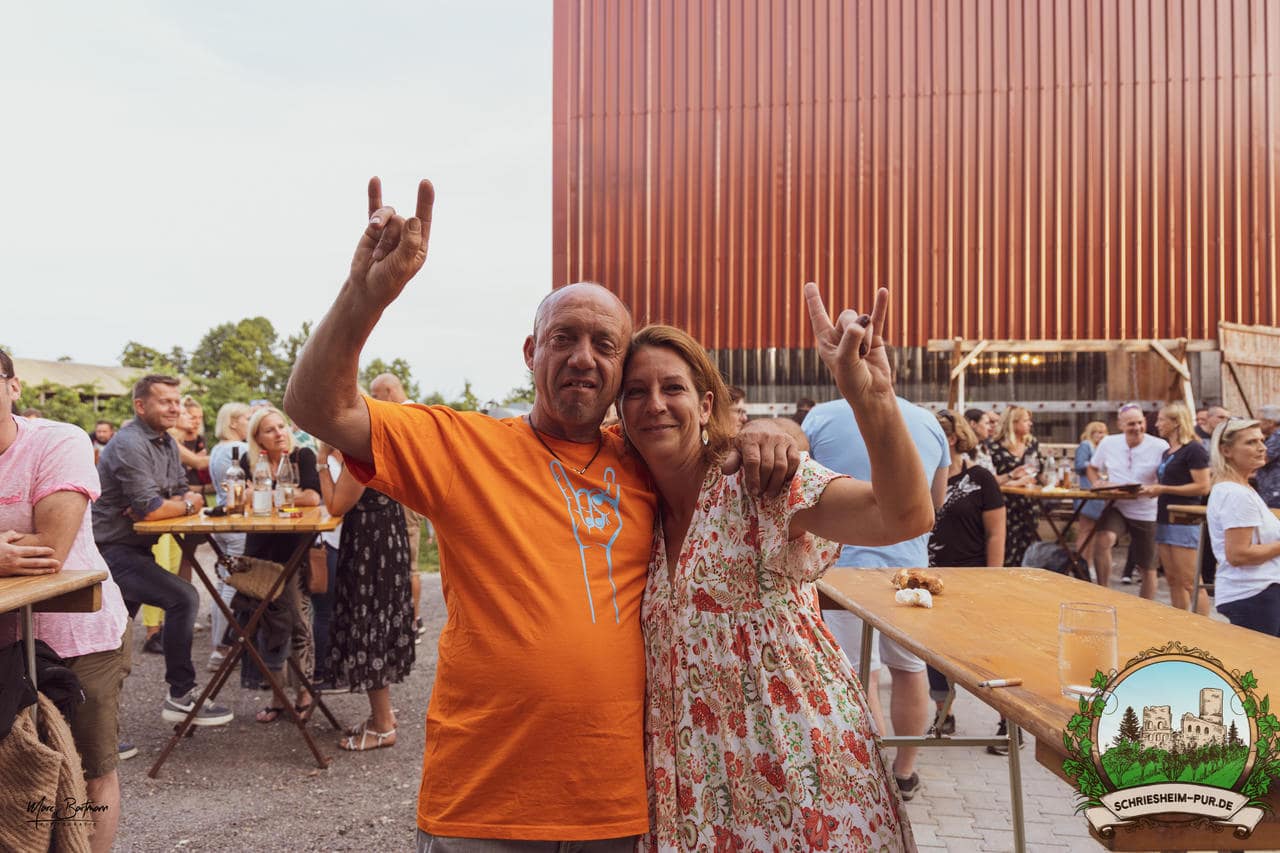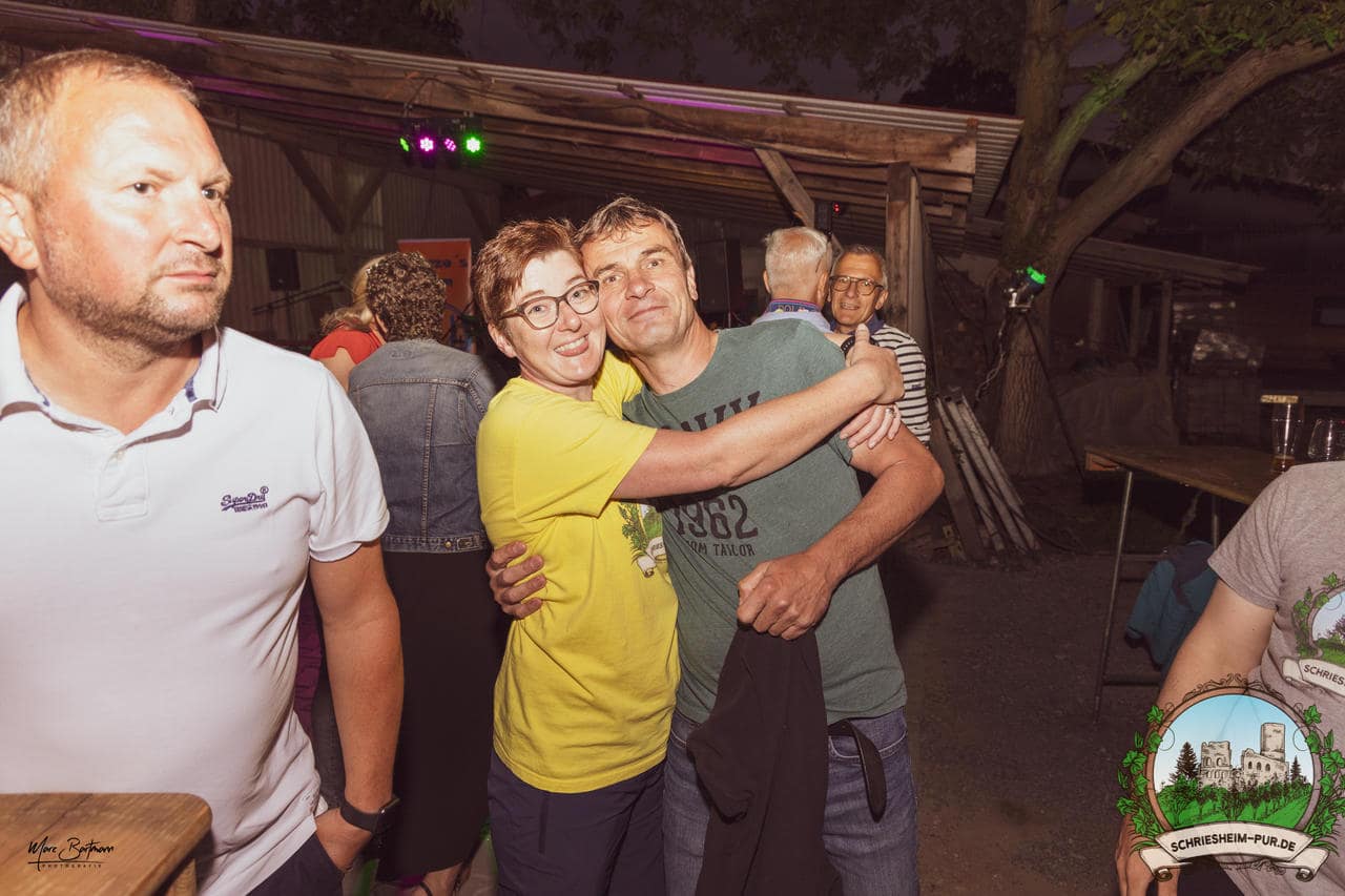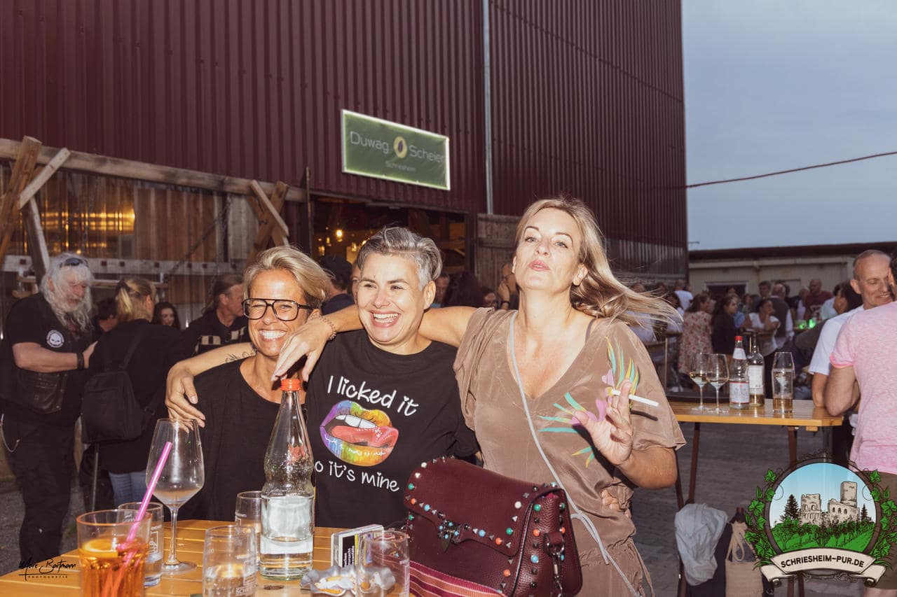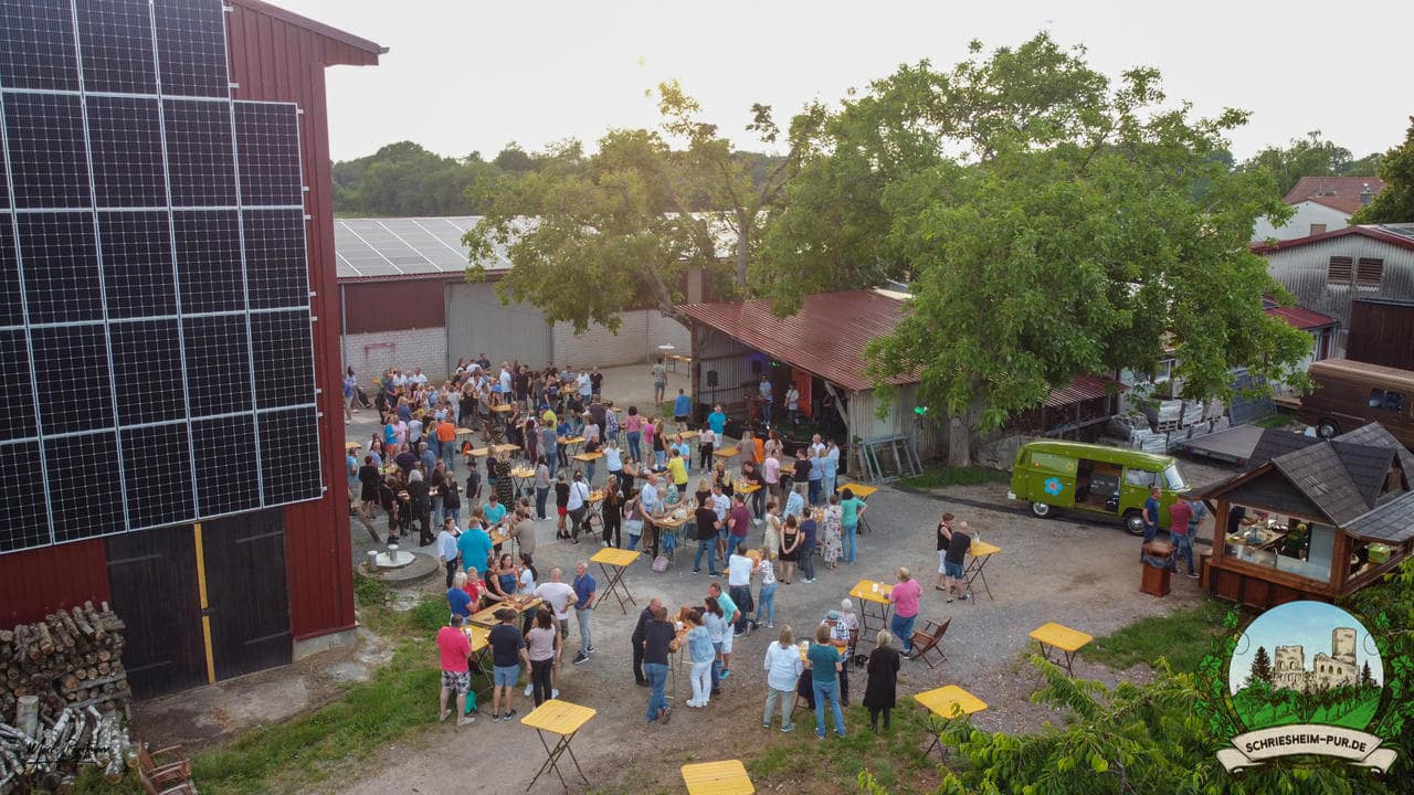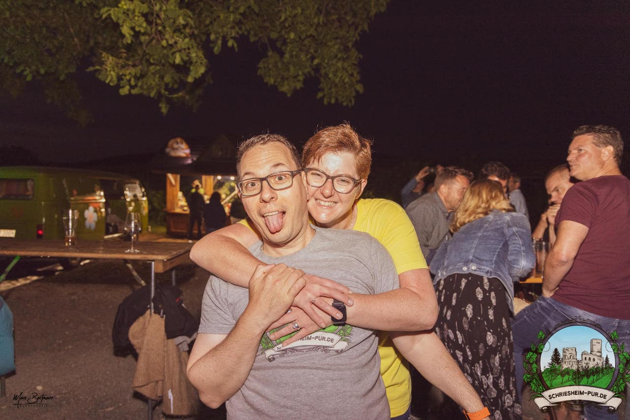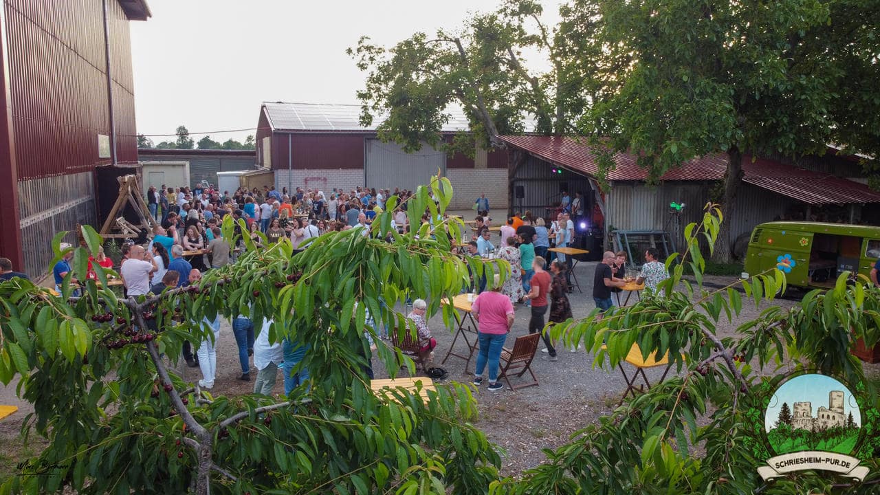 Rund 230 Besucher machten sich auf zum Obsthof Spieß zum Feiern und genießen. Natürlich unter der Einhaltung der drei G´s. Genesen, getestet oder geimpft. Und die Leute feierten ihre wieder erlangte Freiheit in vollen Zügen. Endlich einmal wieder Bekannte nach langer Zeit in den Arm nehmen und miteinander mit einem Schriesheimer Wein anstoßen. Was gibt es schöneres? Dazu gab es von der Firma “Gastro GmbH” leckere kleine Gerichte, so war gut für das Wohl gesorgt. Die Krönung des Ganzen war dann die Band “Gonzo´s Jam” die die Hütte rockten.
