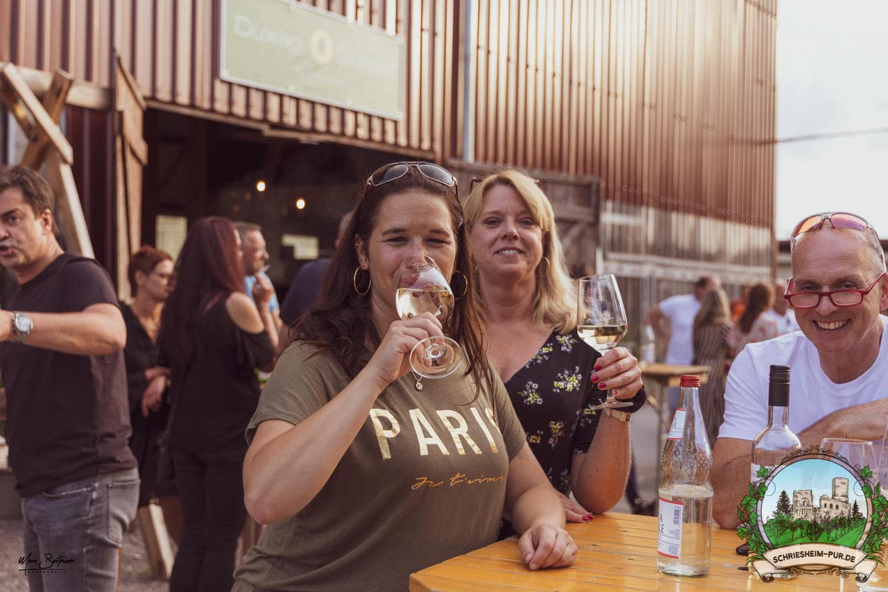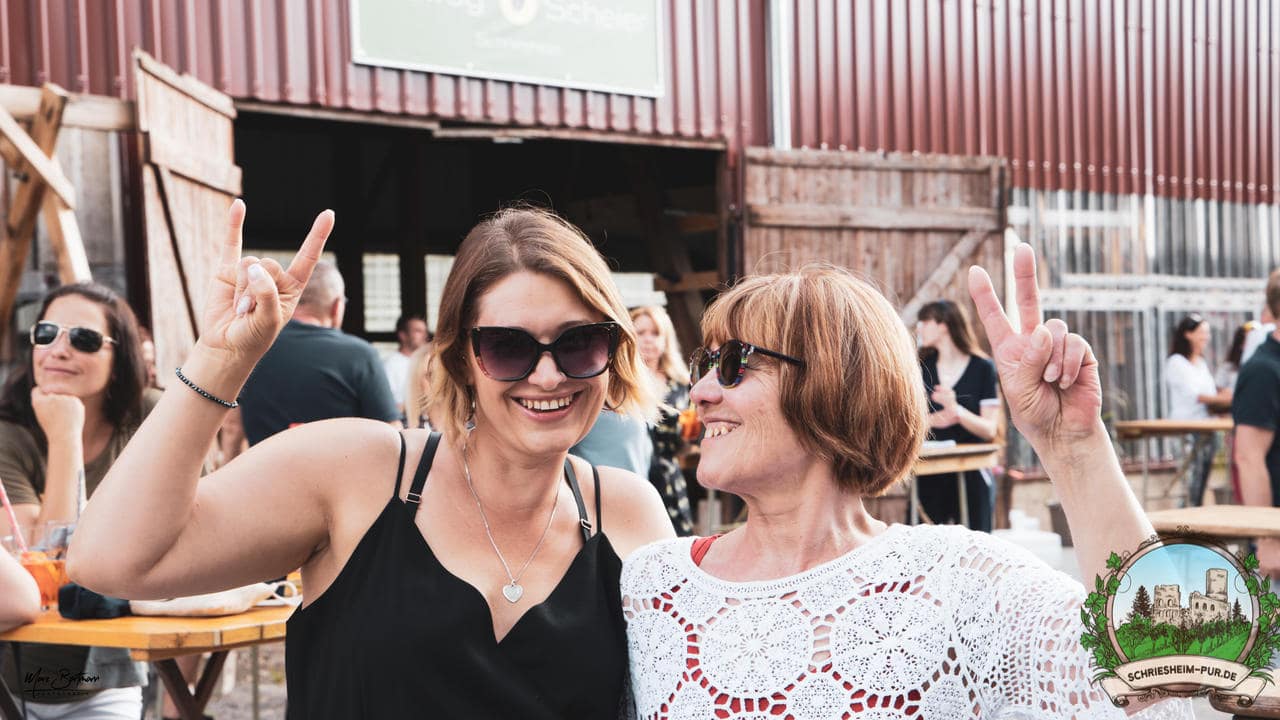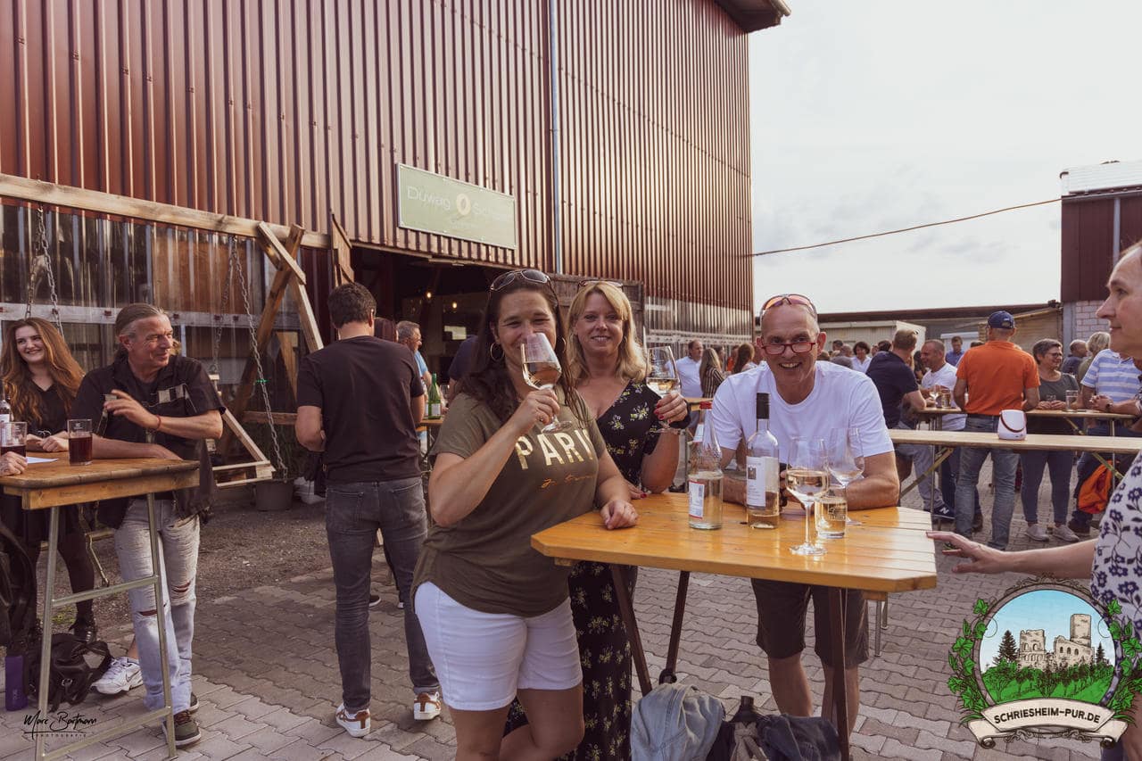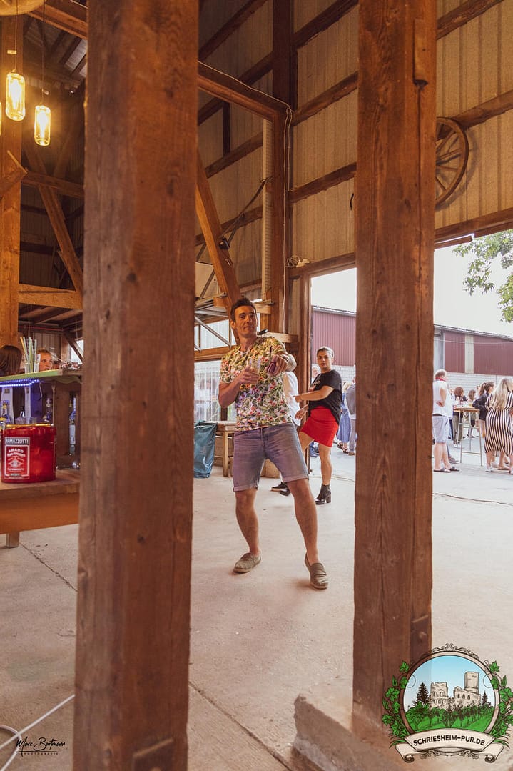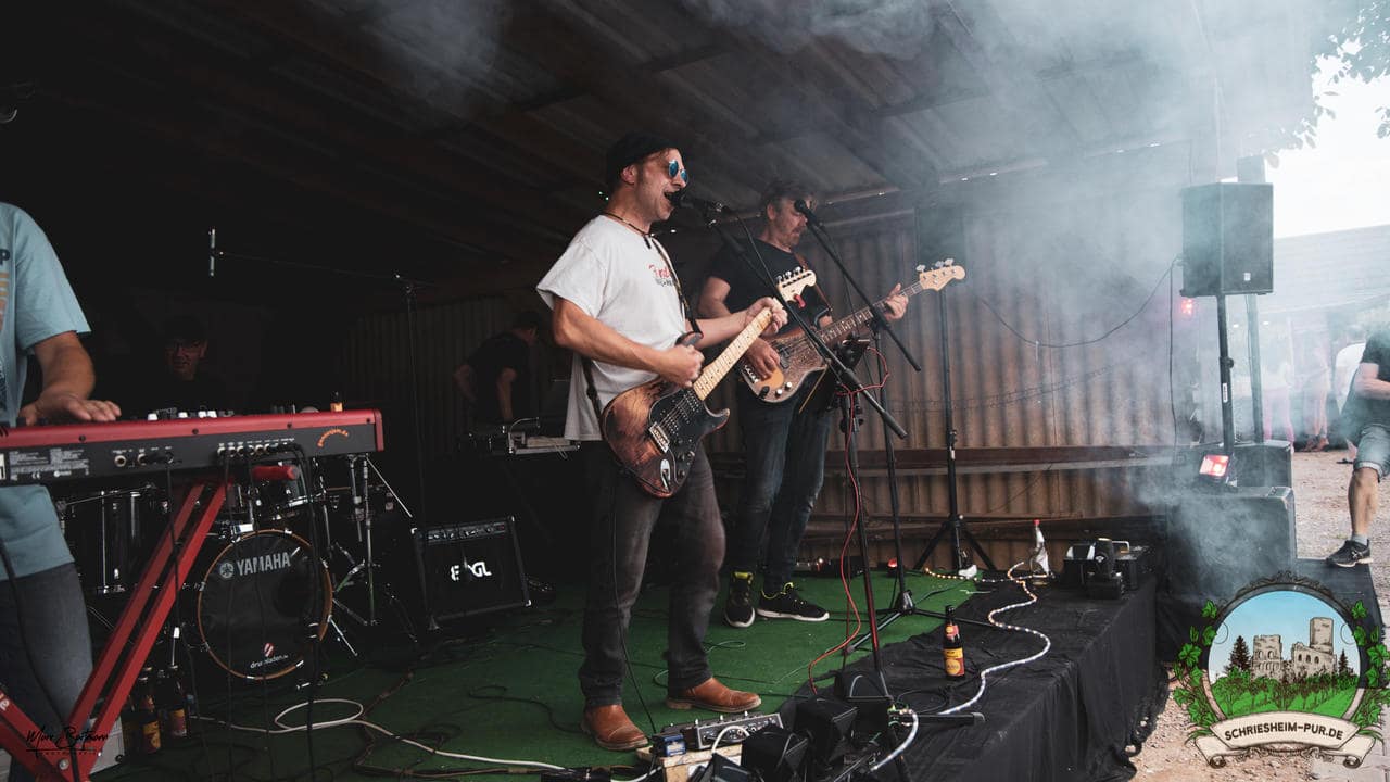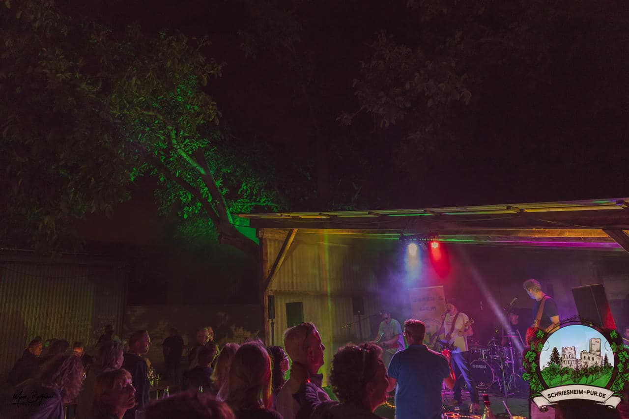 Rund 230 Besucher machten sich auf zum Obsthof Spieß zum Feiern und genießen. Natürlich unter der Einhaltung der drei G´s. Genesen, getestet oder geimpft. Und die Leute feierten ihre wieder erlangte Freiheit in vollen Zügen. Endlich einmal wieder Bekannte nach langer Zeit in den Arm nehmen und miteinander mit einem Schriesheimer Wein anstoßen. Was gibt es schöneres? Dazu gab es von der Firma “Gastro GmbH” leckere kleine Gerichte, so war gut für das Wohl gesorgt. Die Krönung des Ganzen war dann die Band “Gonzo´s Jam” die die Hütte rockten.