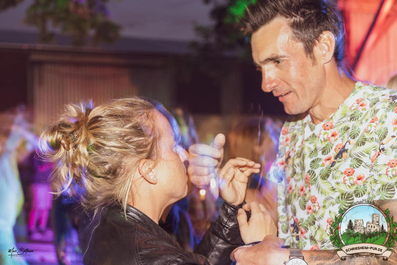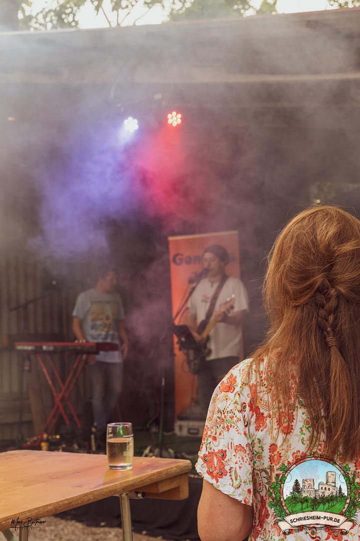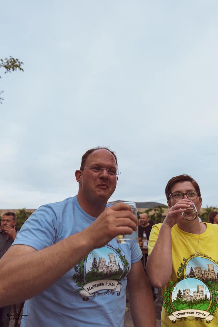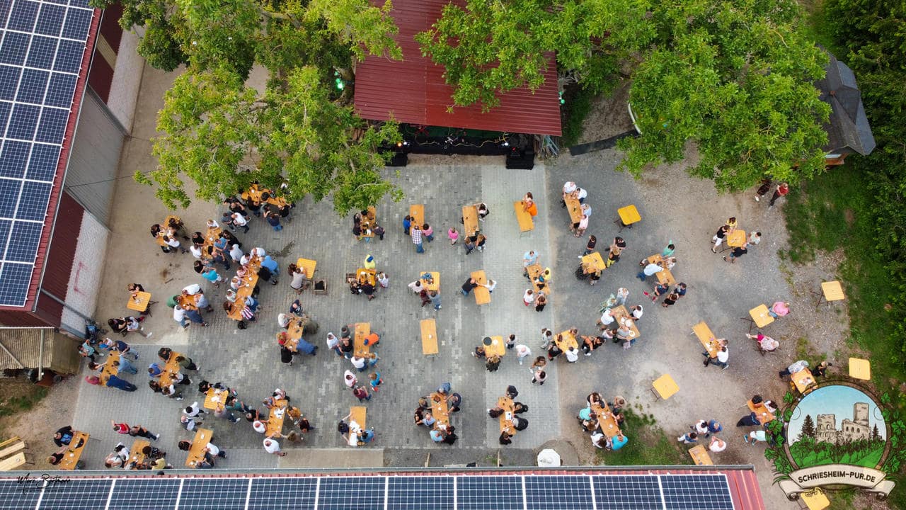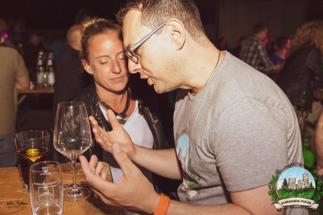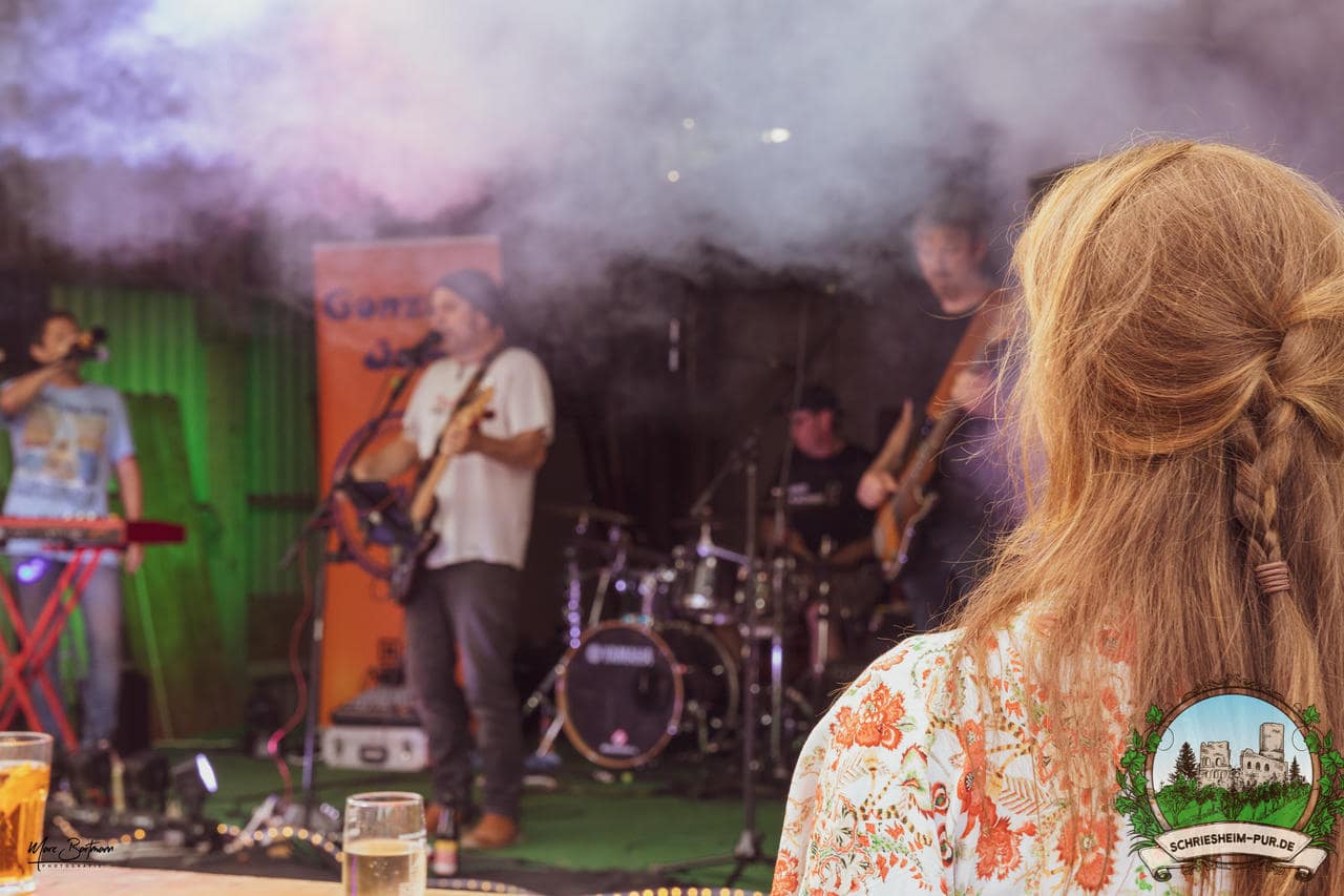 Rund 230 Besucher machten sich auf zum Obsthof Spieß zum Feiern und genießen. Natürlich unter der Einhaltung der drei G´s. Genesen, getestet oder geimpft. Und die Leute feierten ihre wieder erlangte Freiheit in vollen Zügen. Endlich einmal wieder Bekannte nach langer Zeit in den Arm nehmen und miteinander mit einem Schriesheimer Wein anstoßen. Was gibt es schöneres? Dazu gab es von der Firma “Gastro GmbH” leckere kleine Gerichte, so war gut für das Wohl gesorgt. Die Krönung des Ganzen war dann die Band “Gonzo´s Jam” die die Hütte rockten.