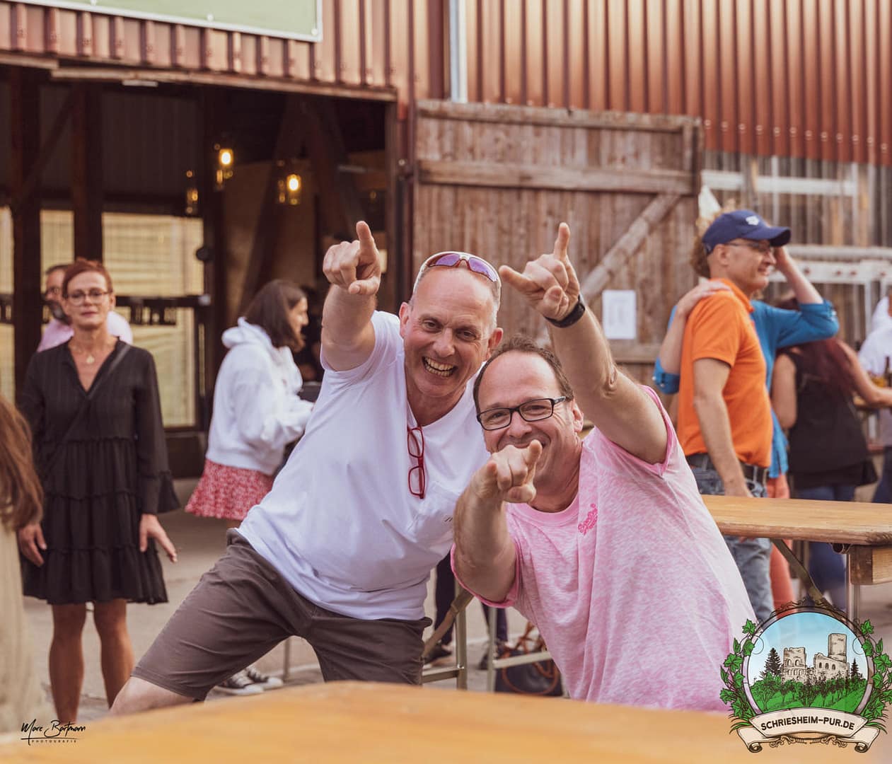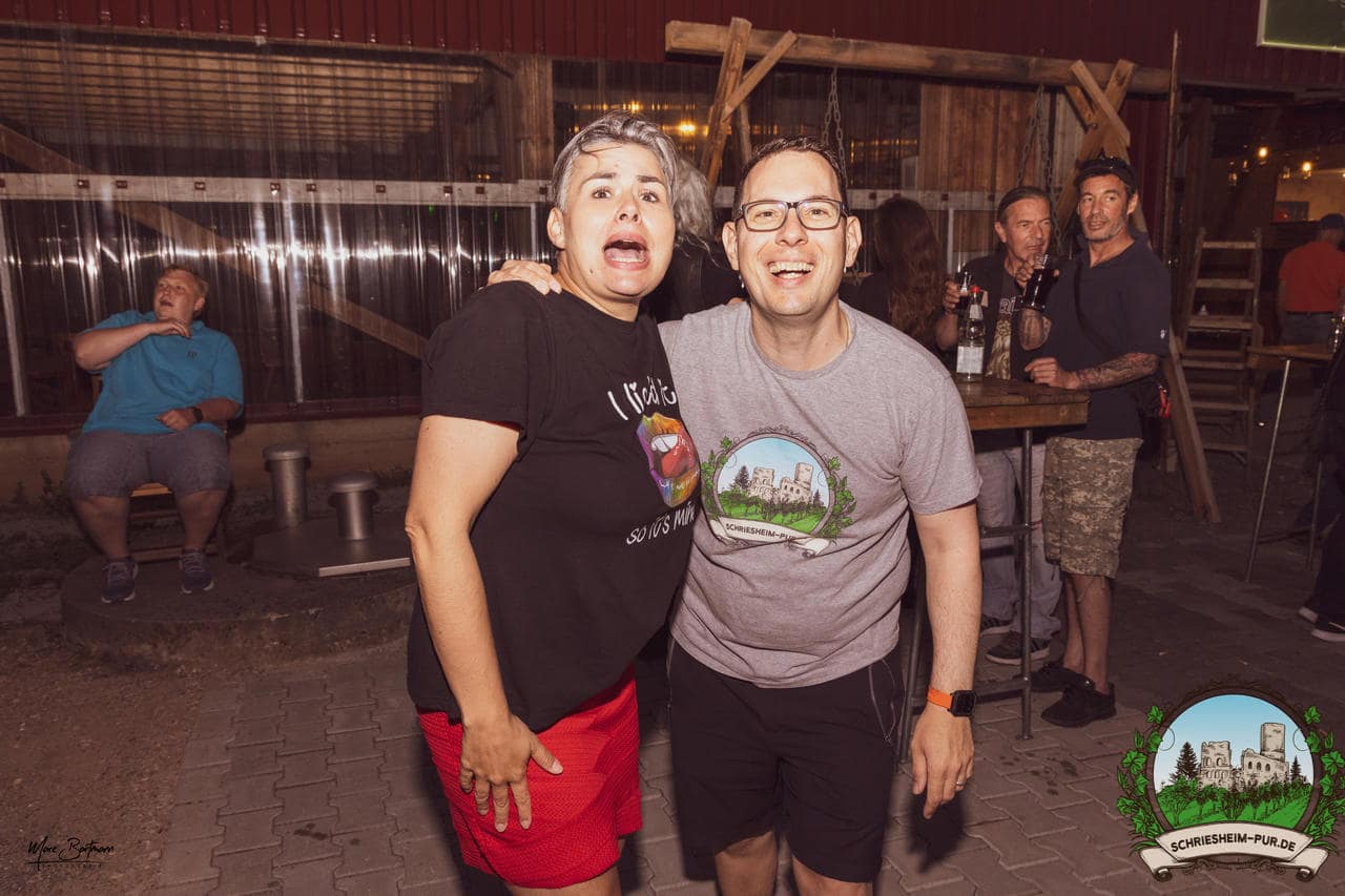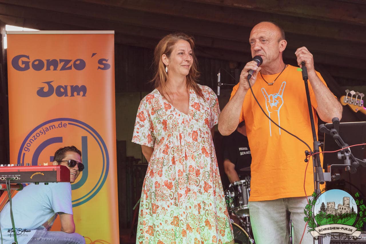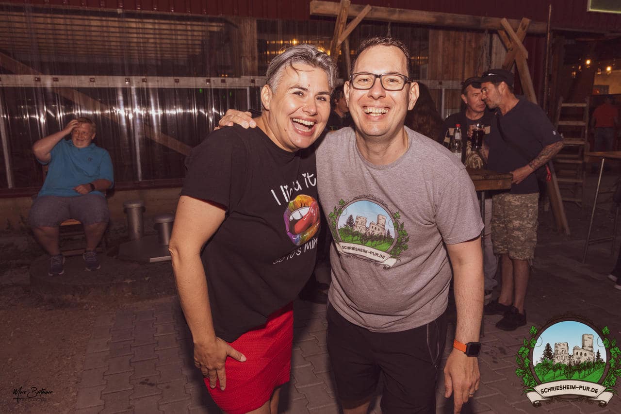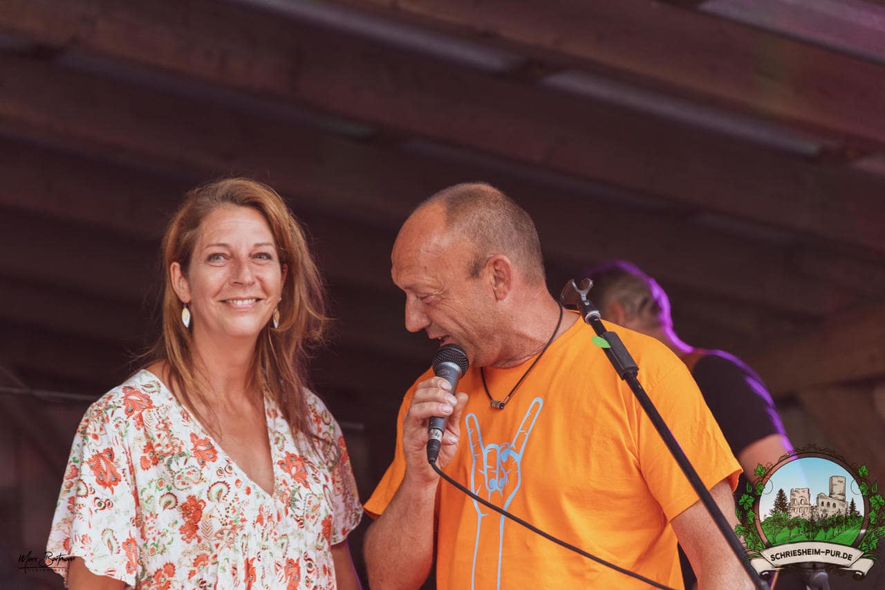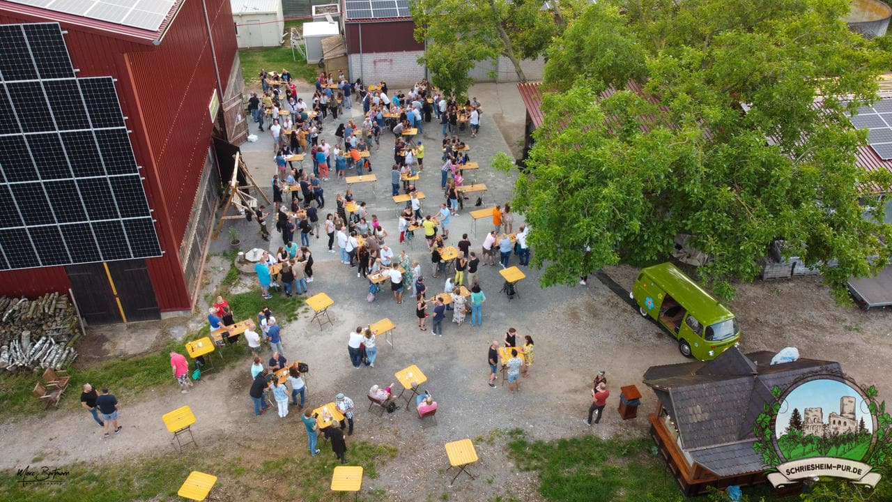 Rund 230 Besucher machten sich auf zum Obsthof Spieß zum Feiern und genießen. Natürlich unter der Einhaltung der drei G´s. Genesen, getestet oder geimpft. Und die Leute feierten ihre wieder erlangte Freiheit in vollen Zügen. Endlich einmal wieder Bekannte nach langer Zeit in den Arm nehmen und miteinander mit einem Schriesheimer Wein anstoßen. Was gibt es schöneres? Dazu gab es von der Firma “Gastro GmbH” leckere kleine Gerichte, so war gut für das Wohl gesorgt. Die Krönung des Ganzen war dann die Band “Gonzo´s Jam” die die Hütte rockten.