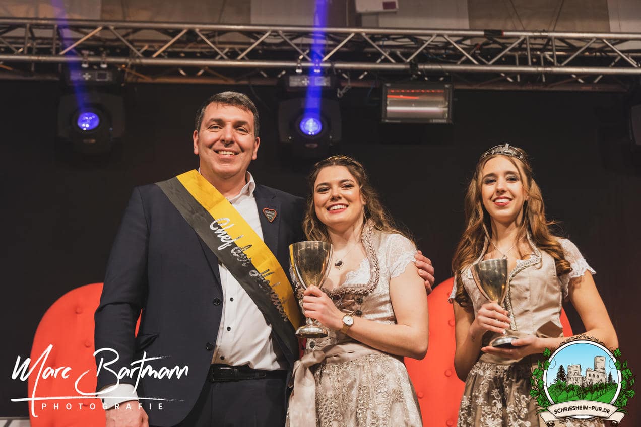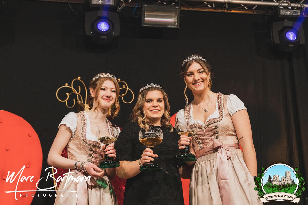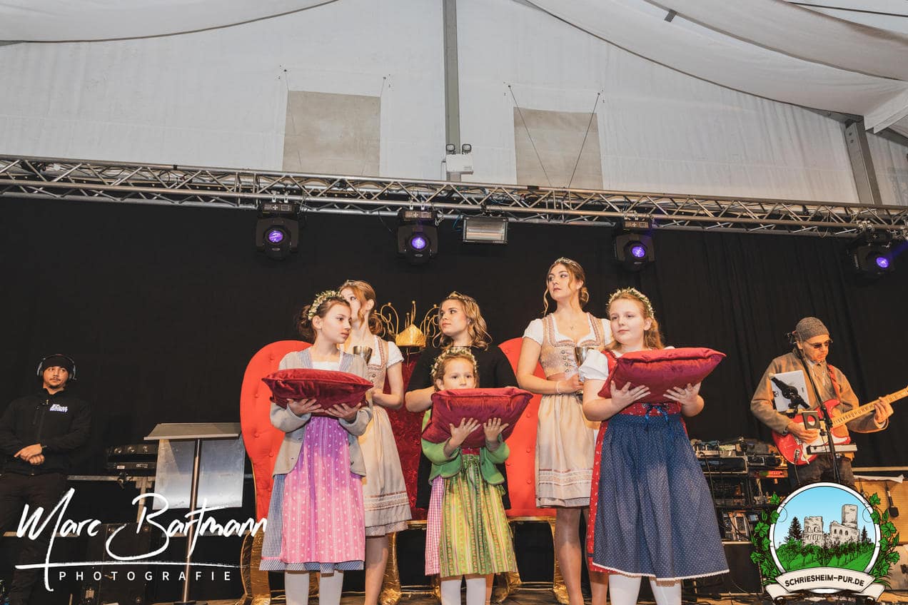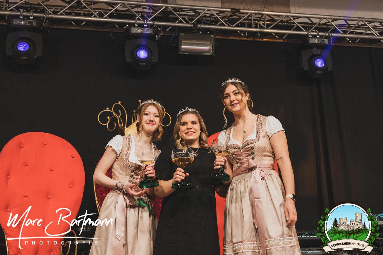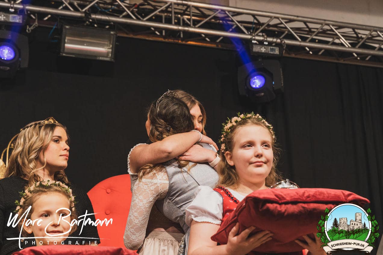 Die neuen Weinhoheiten Miriam Knapp, als Weinkönigin mit den Prinzessinnen Sophie Weil und Ylva Neuert wurden bei der Mathaisemarkteröffnung 2023 durch die Krönung in ihr Amt eingeführt. Endlich wieder im Festzelt auf dem Mathaisemarkt, so wie wir es kennen. Das Jahr davor fand die Krönung noch auf der Ersatzveranstaltung dem Stadtfest Schriesheim statt.