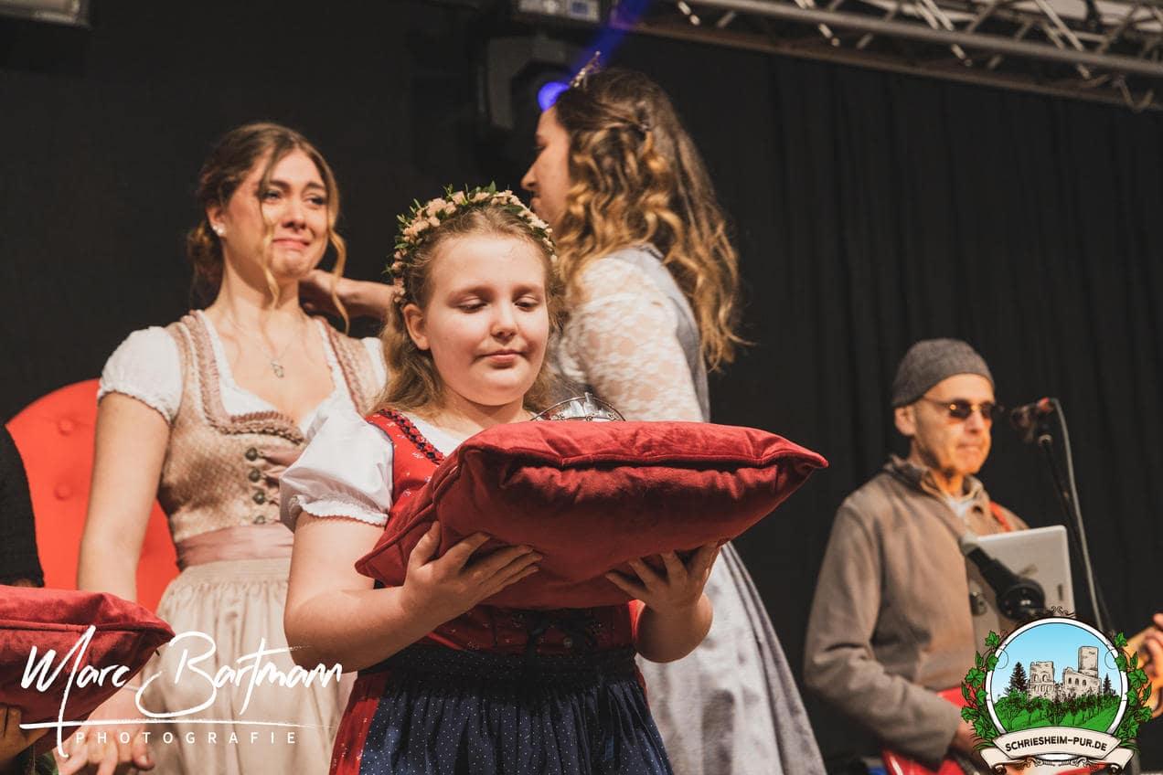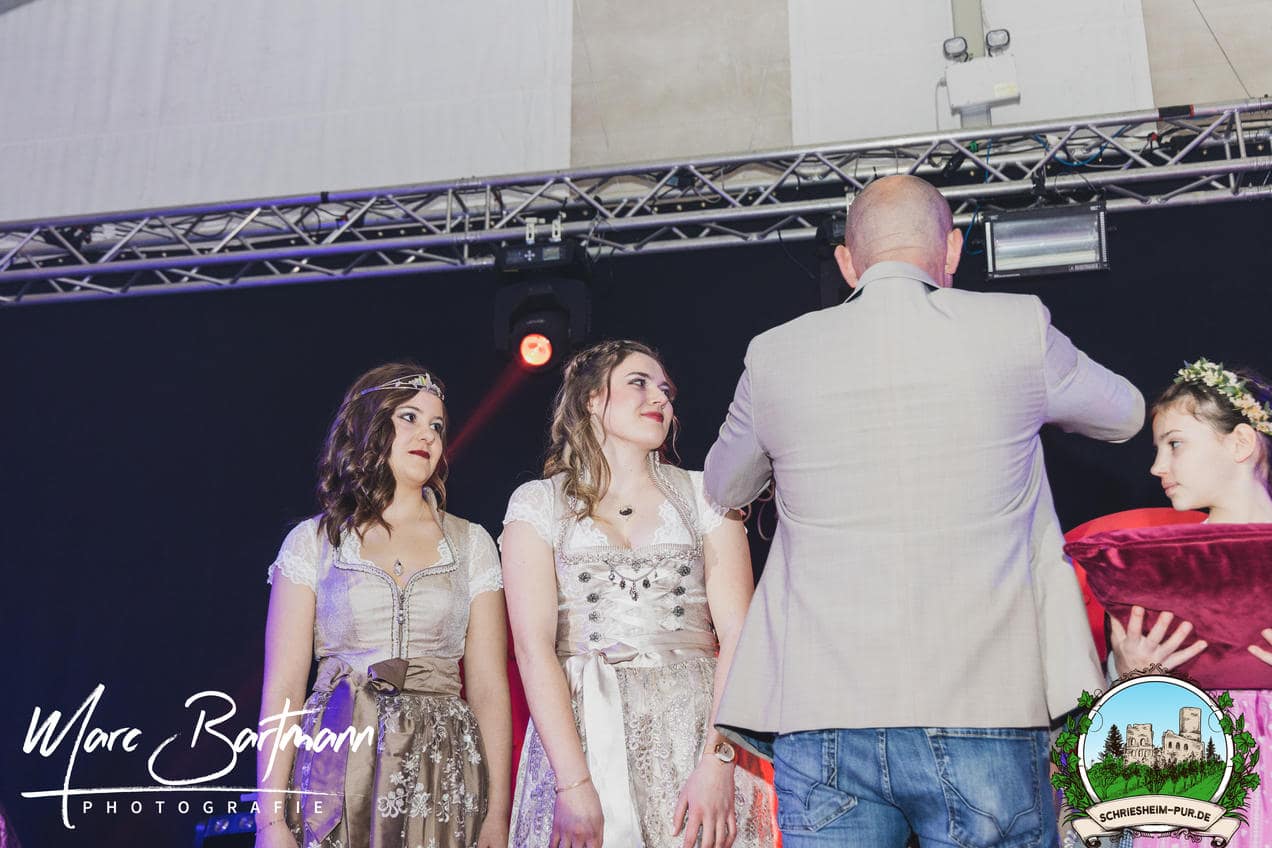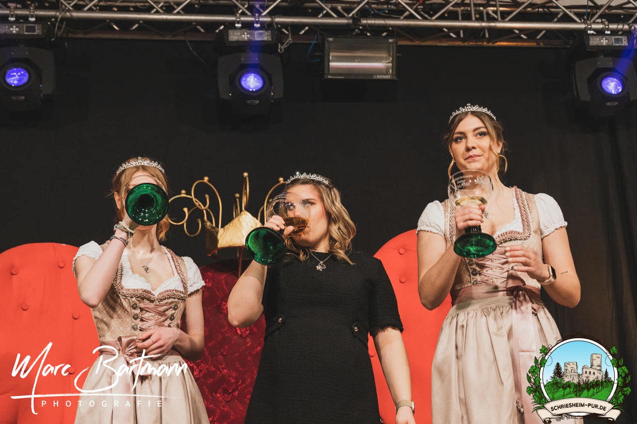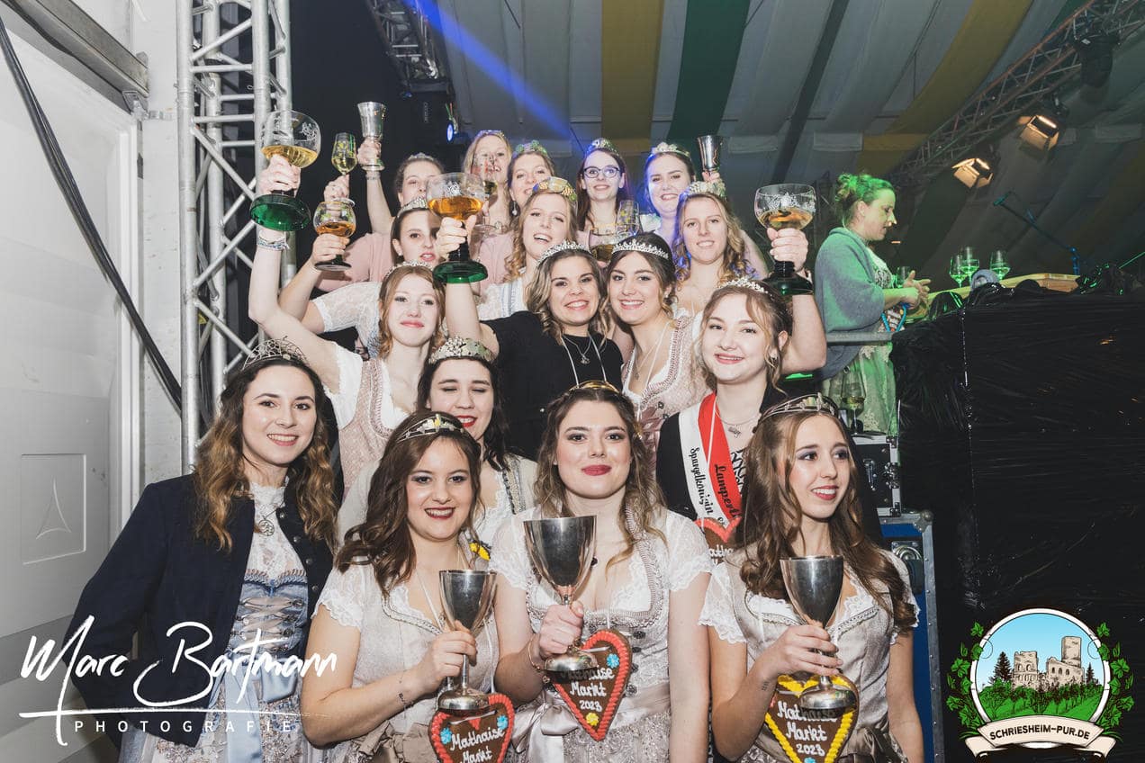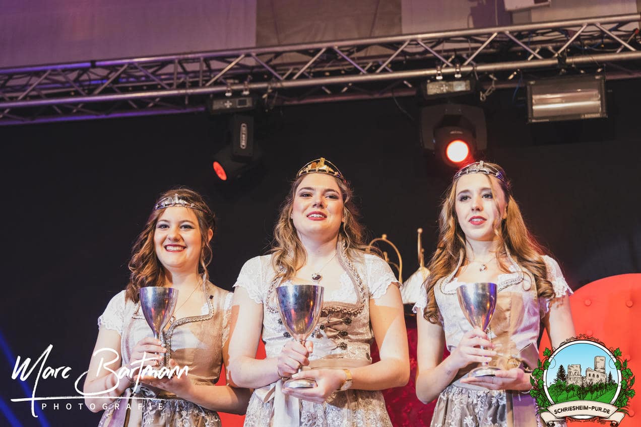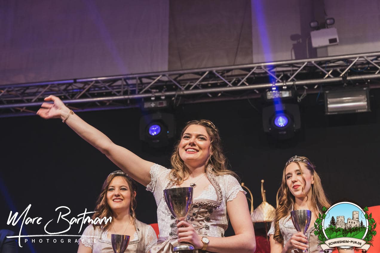 Die neuen Weinhoheiten Miriam Knapp, als Weinkönigin mit den Prinzessinnen Sophie Weil und Ylva Neuert wurden bei der Mathaisemarkteröffnung 2023 durch die Krönung in ihr Amt eingeführt. Endlich wieder im Festzelt auf dem Mathaisemarkt, so wie wir es kennen. Das Jahr davor fand die Krönung noch auf der Ersatzveranstaltung dem Stadtfest Schriesheim statt.