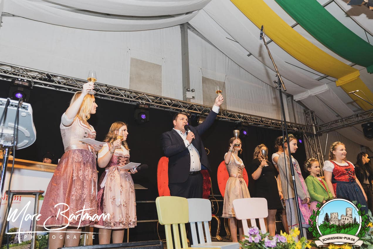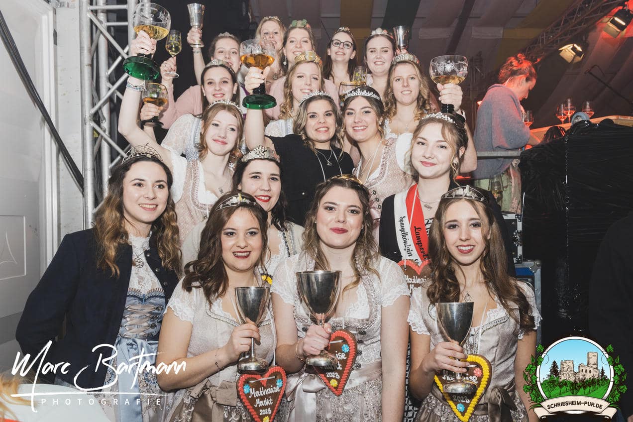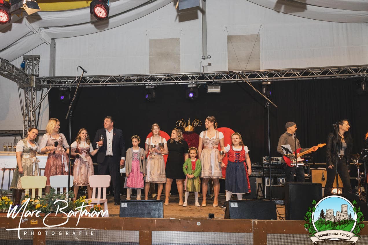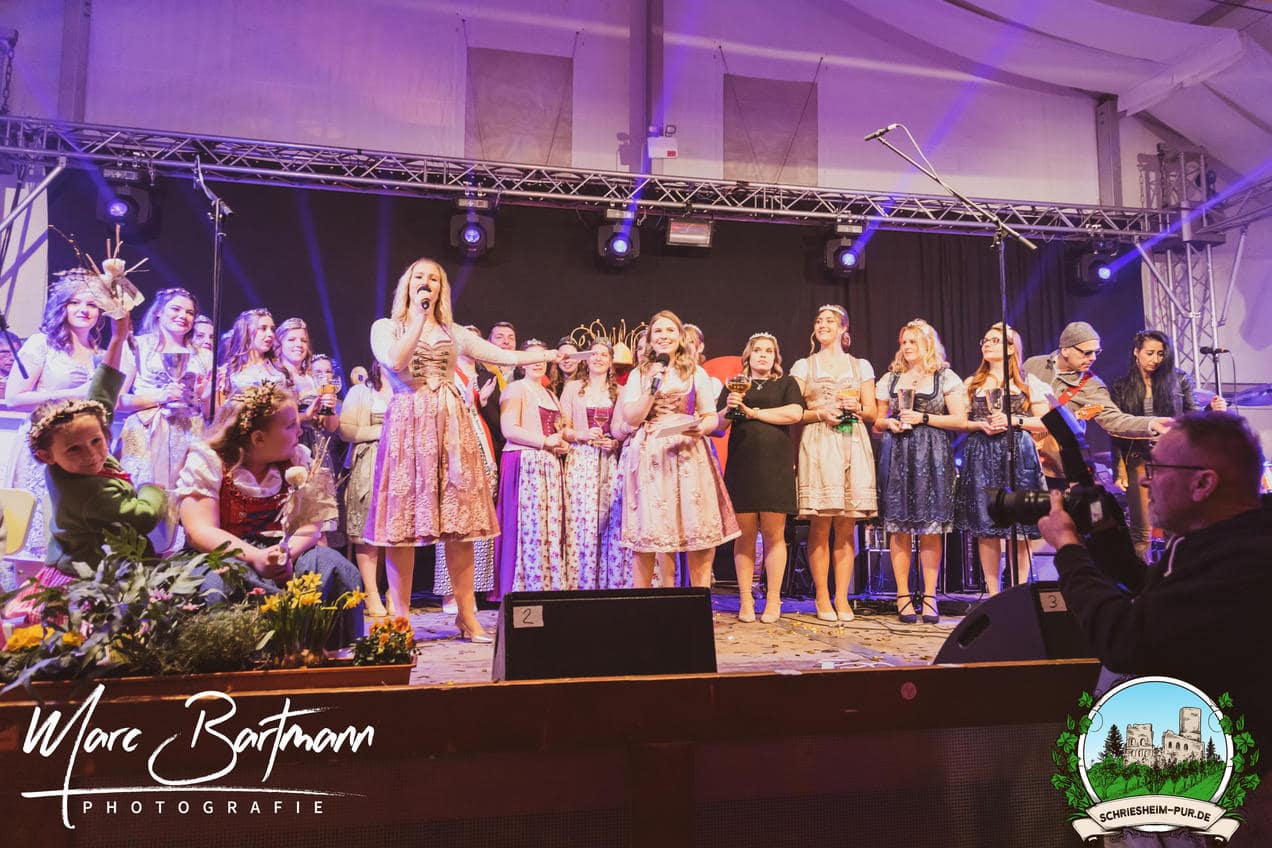 Mathaisemarkt 2023 Krönung der Weinhoheiten und Eröffnung – Nach dem durch Corona bedingt 2020 unsere ehemaligen Weinhoheiten 2 Jahre regieren durften, wurden dieses Jahr, nach nicht ganz 1 Jahr die Weinhoheiten Ann-Kathrin Haas (Königin), Luisa Gadzalli und Anna Scheid ab gekrönt durch Sofia Hartmann, Bereichsweinprinzessin Bergstraße / Kraichgau.