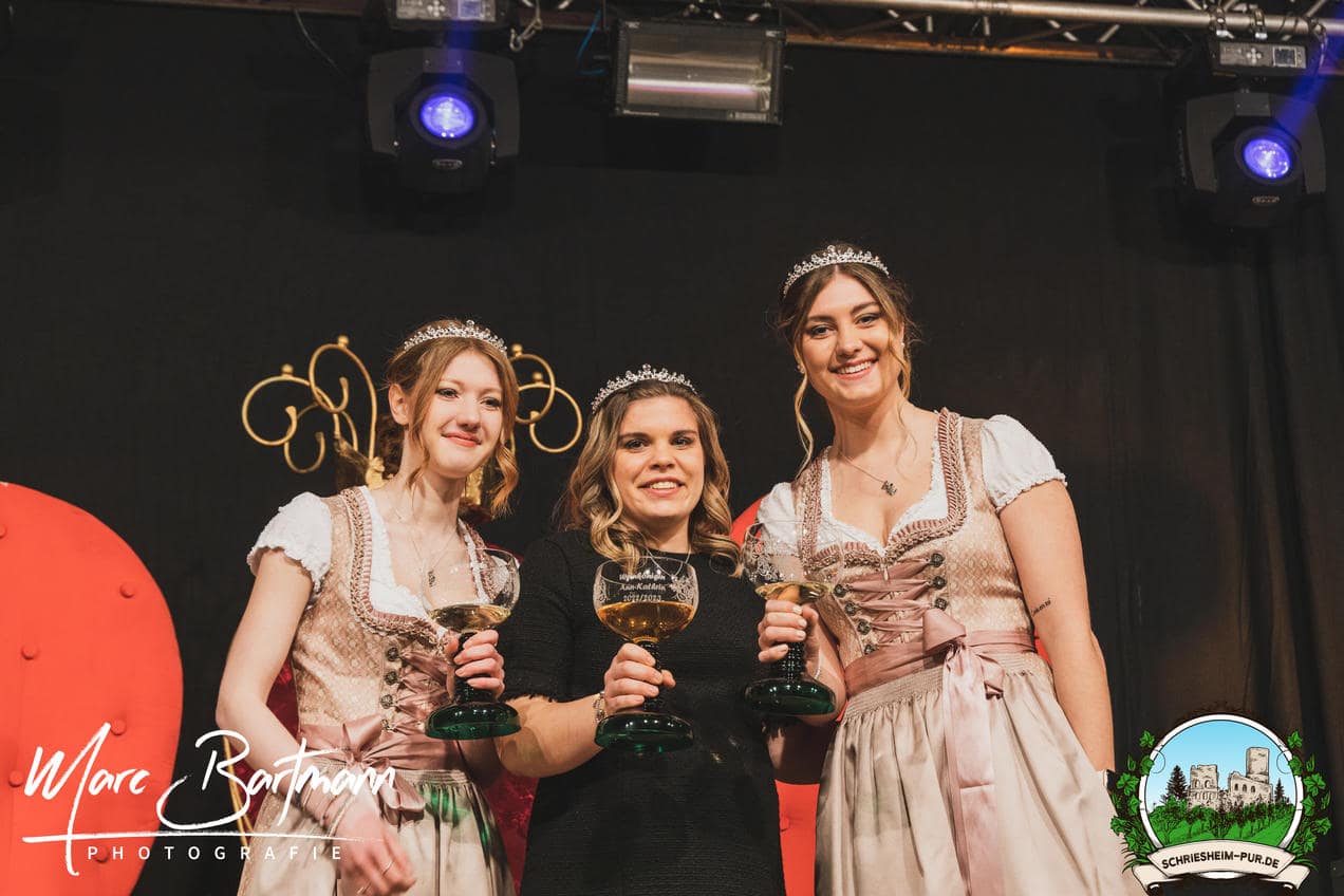 Die neuen Weinhoheiten Miriam Knapp, als Weinkönigin mit den Prinzessinnen Sophie Weil und Ylva Neuert wurden gekrönt!