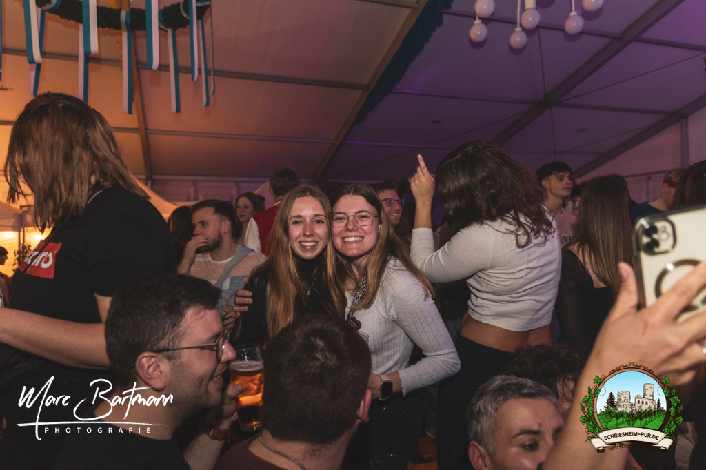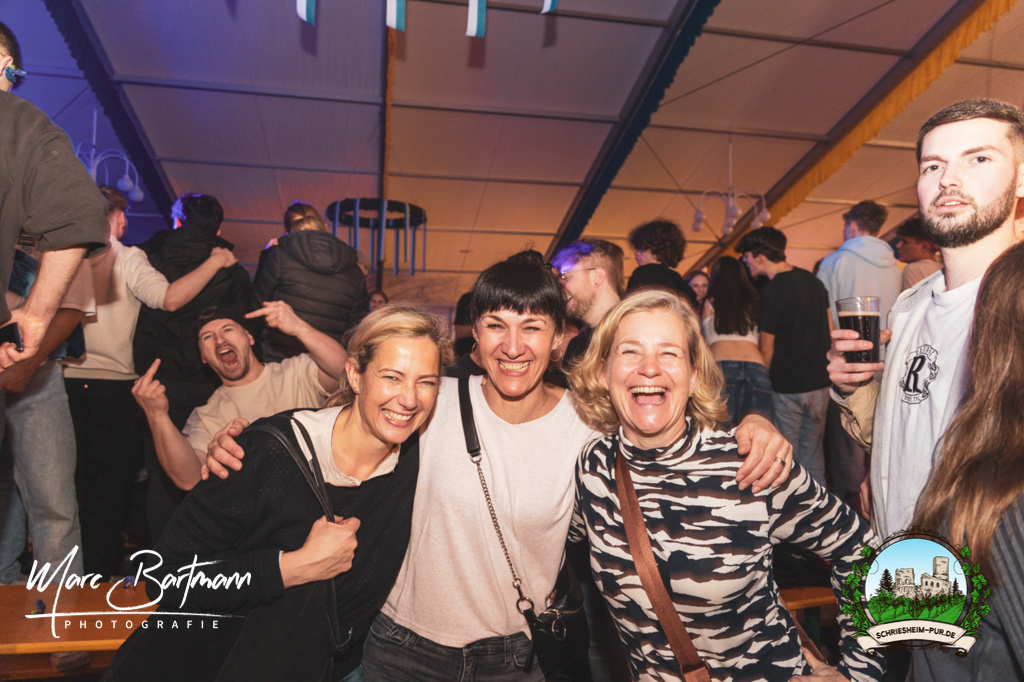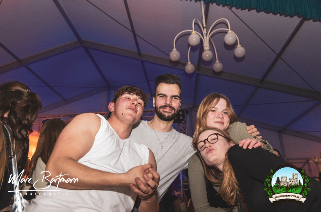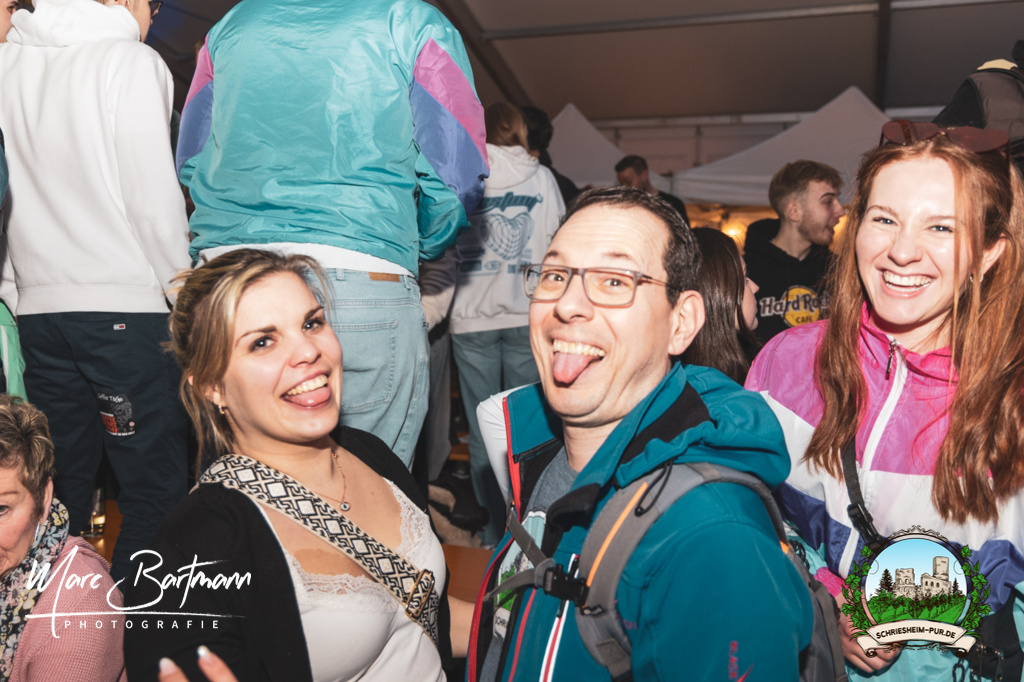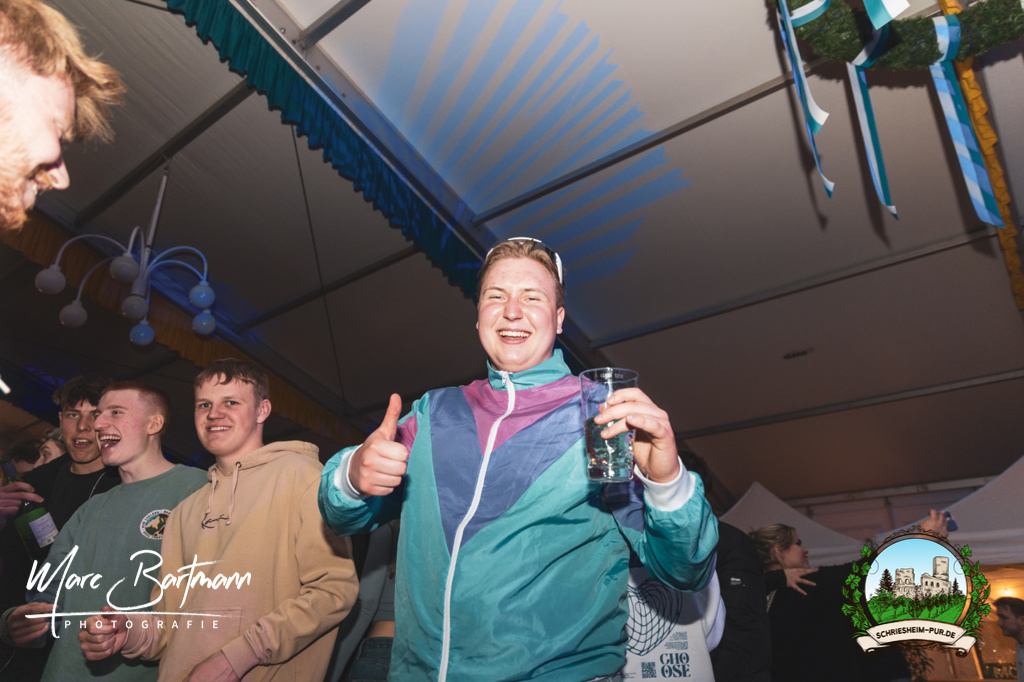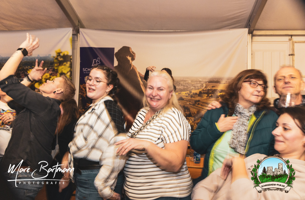 Die Atmosphäre im Zelt war elektrisierend und die Menschen feierten ausgelassen zu den eingängigen Melodien vergangener Jahrzehnte. Tanzfläche und Bänke waren gleichermaßen belagert, während die Gäste zu den vertrauten Klängen ihre Tanzmoves zum Besten gaben.
