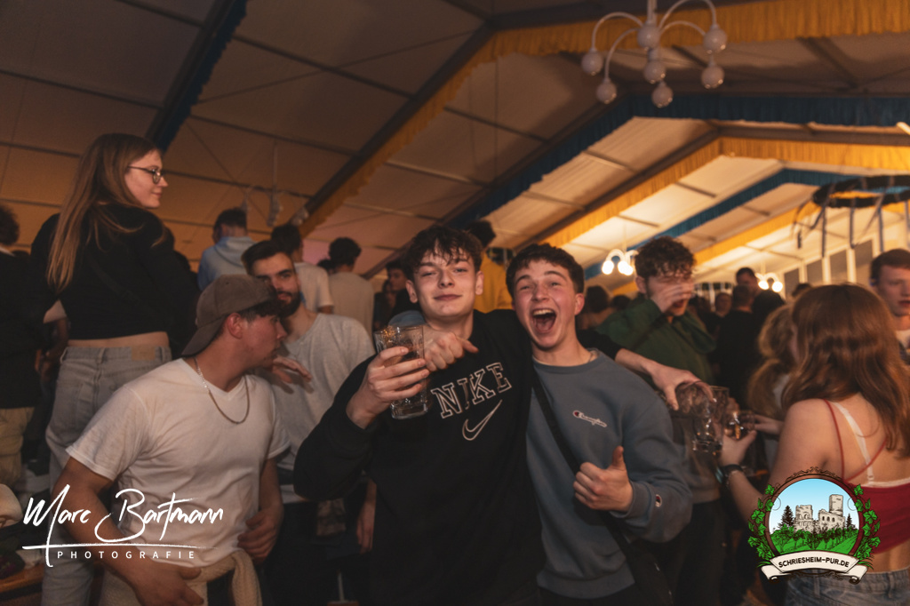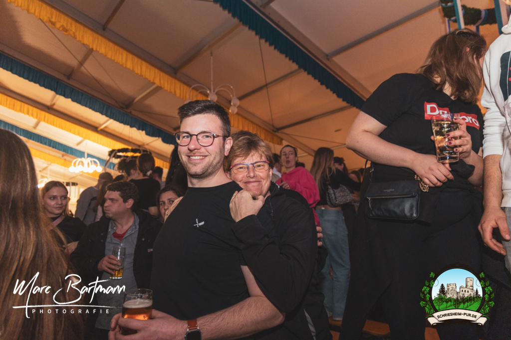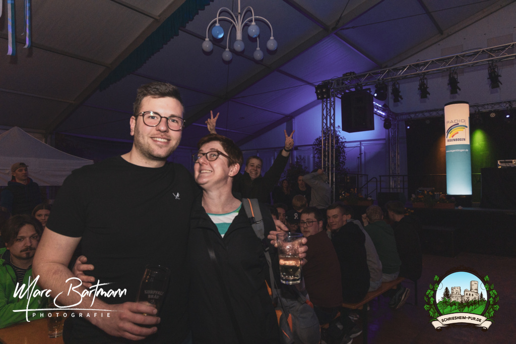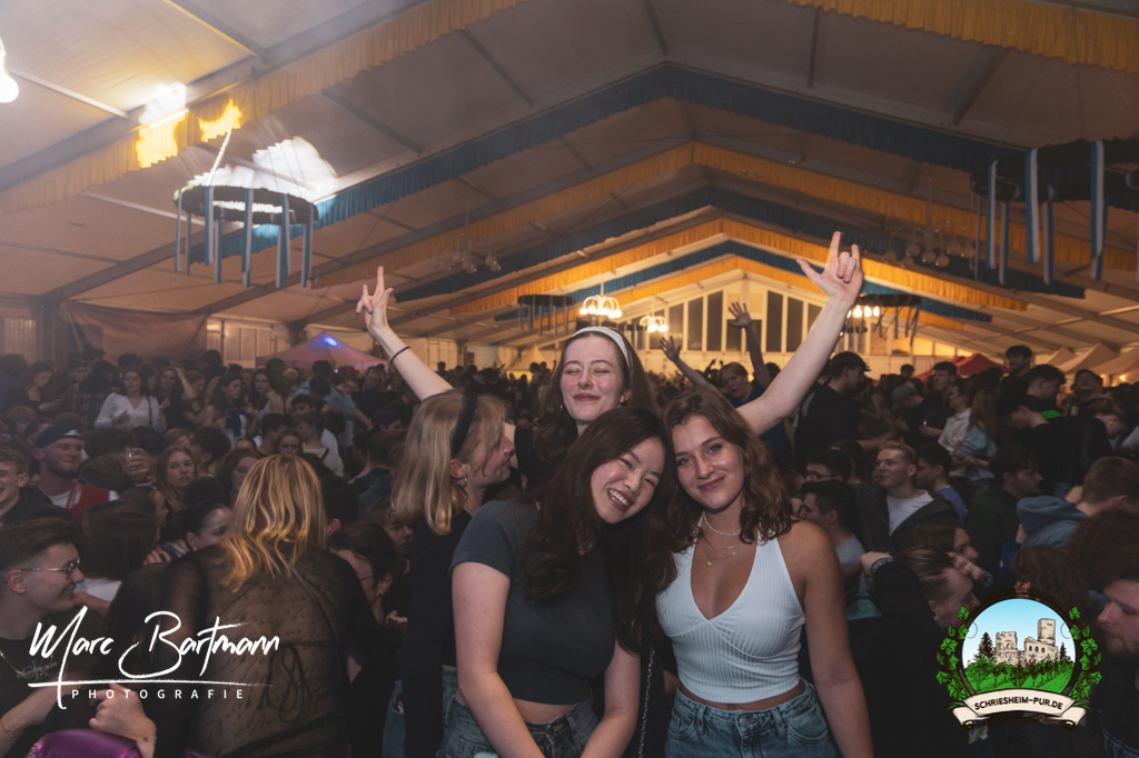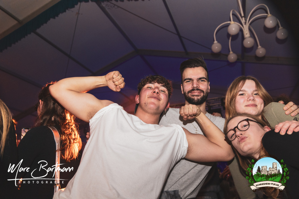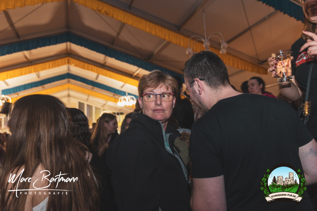 Die Atmosphäre im Zelt war elektrisierend und die Menschen feierten ausgelassen zu den eingängigen Melodien vergangener Jahrzehnte. Tanzfläche und Bänke waren gleichermaßen belagert, während die Gäste zu den vertrauten Klängen ihre Tanzmoves zum Besten gaben.