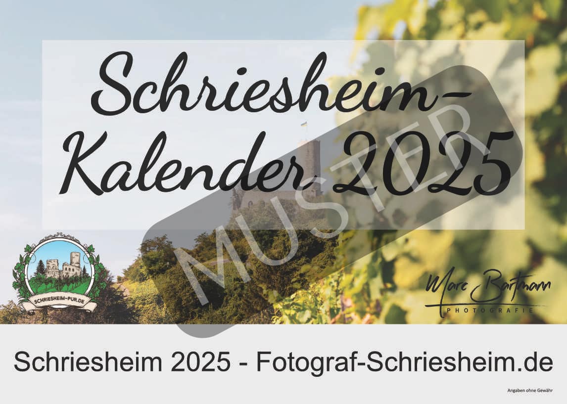Dieses Jahr bereits das 7. Mal in Folge, ein Kalender mit unseren Bildern. Der neue Schriesheim Kalender 2025.