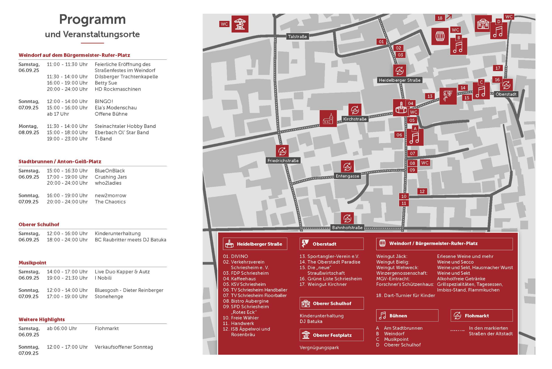 Programm Straßenfest Schriesheim 2025 (Quelle: Stradt Schriesheim)