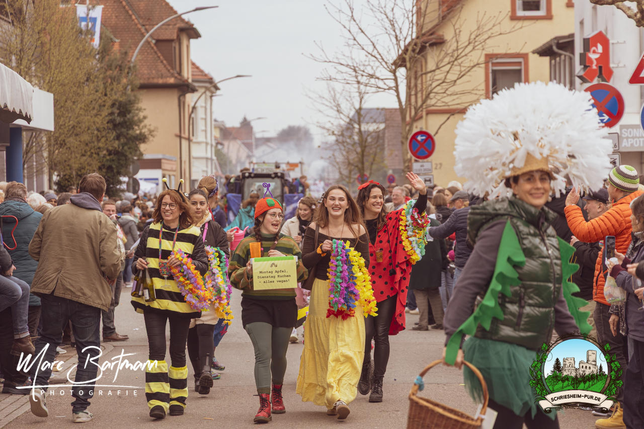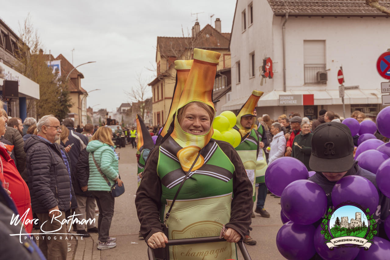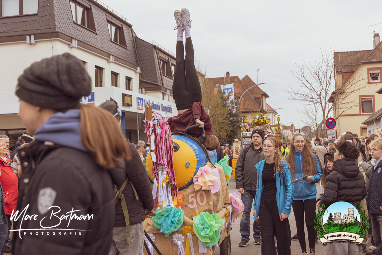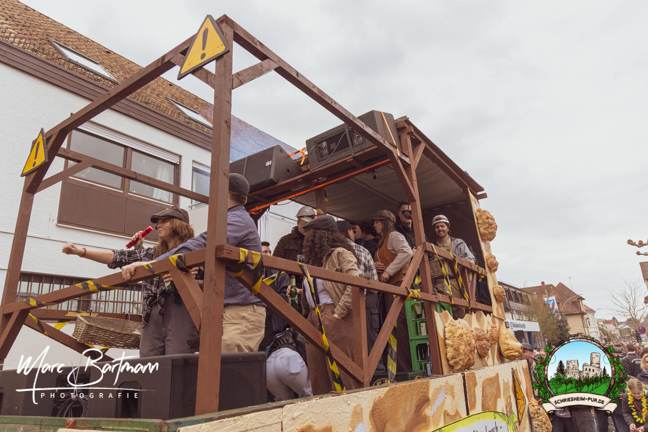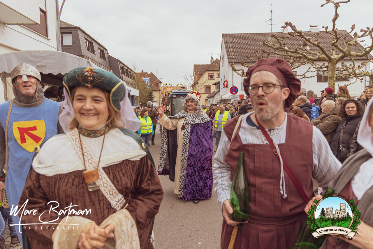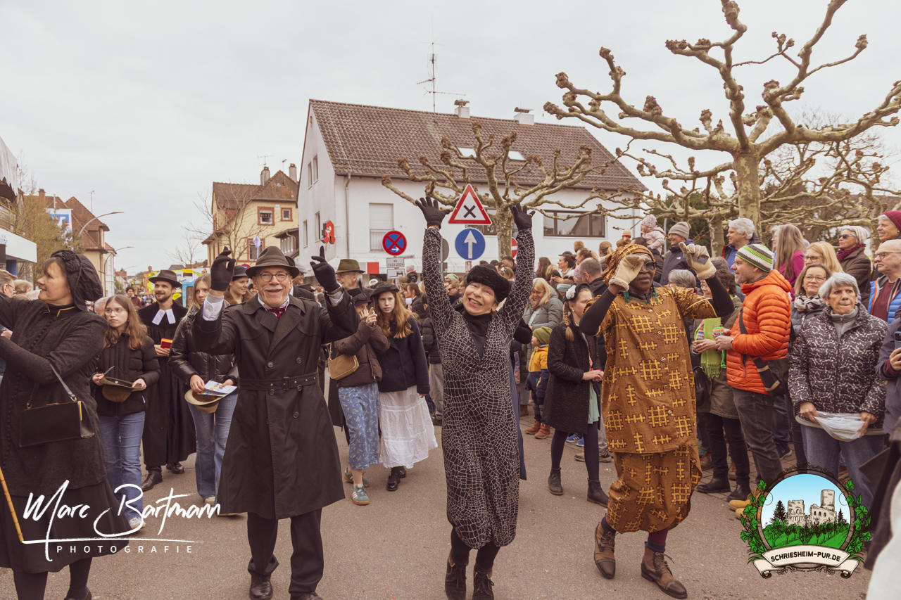 Doch dieses Jahr war alles ein bisschen anders – besser! Der Umzug war lustiger, kreativer und lebendiger als in den Vorjahren. Die Gruppen hatten sichtlich Spaß am Motto „Schriesheimer Wahrzeichen“ und setzten es mit viel Witz und Liebe zum Detail um. Von nachgebauten historischen Gebäuden über humorvolle Interpretationen lokaler Legenden bis hin zu kulinarischen Hommagen an die Region: Hier stimmte einfach alles.