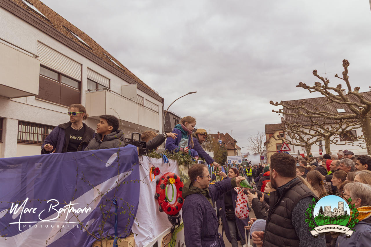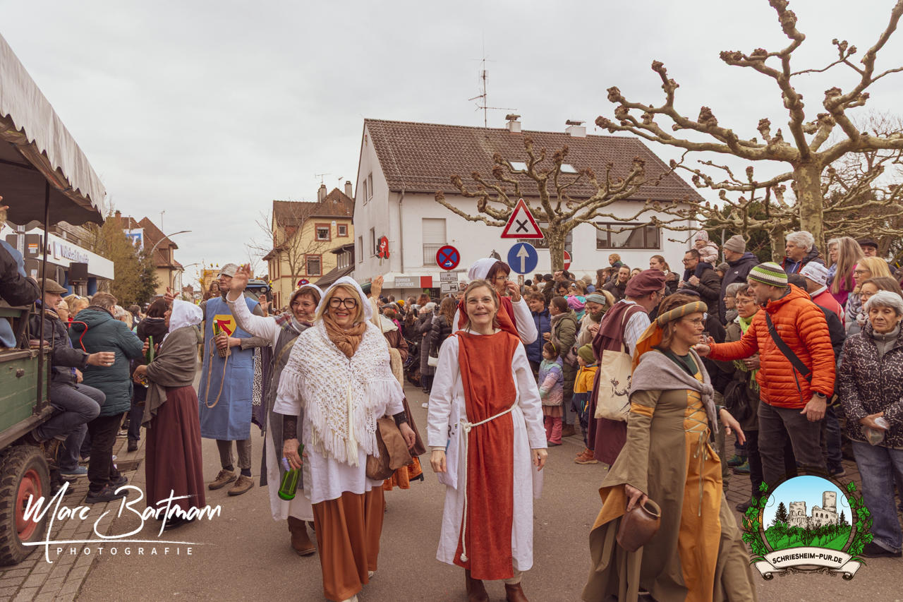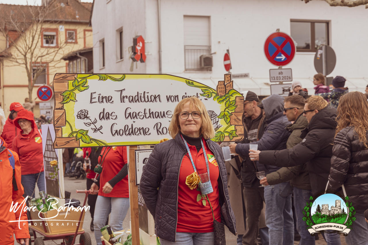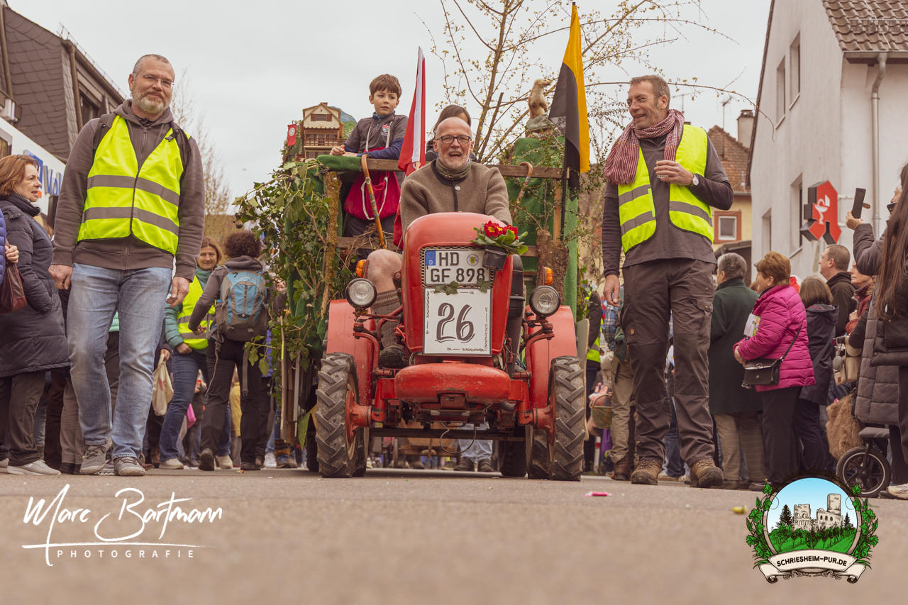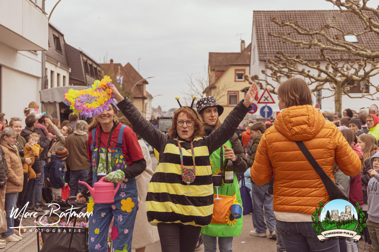 Doch dieses Jahr war alles ein bisschen anders – besser! Der Umzug war lustiger, kreativer und lebendiger als in den Vorjahren. Die Gruppen hatten sichtlich Spaß am Motto „Schriesheimer Wahrzeichen“ und setzten es mit viel Witz und Liebe zum Detail um. Von nachgebauten historischen Gebäuden über humorvolle Interpretationen lokaler Legenden bis hin zu kulinarischen Hommagen an die Region: Hier stimmte einfach alles.