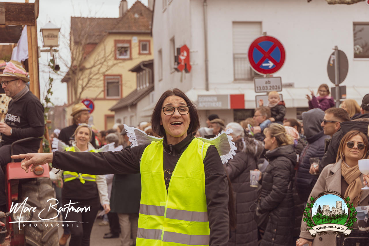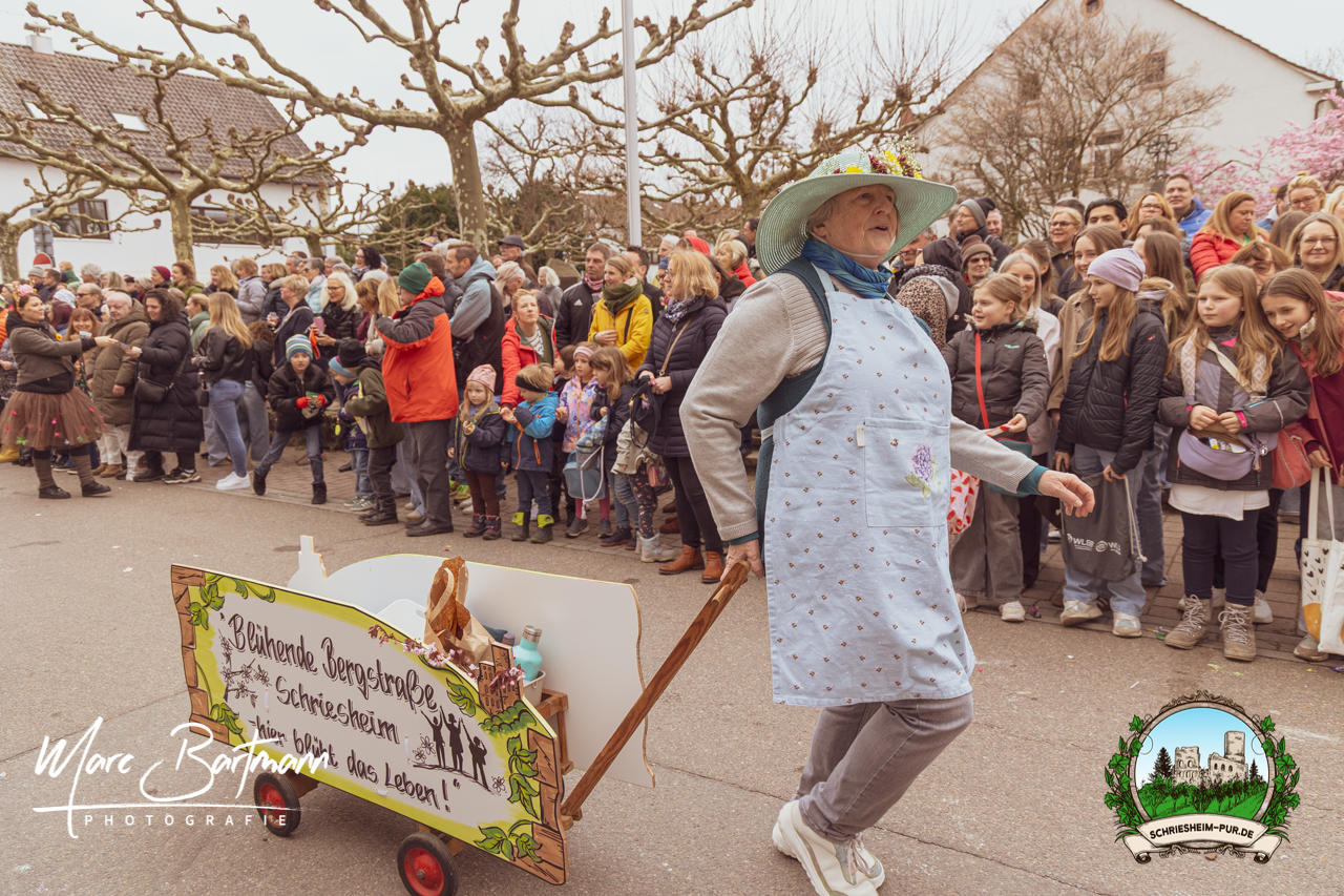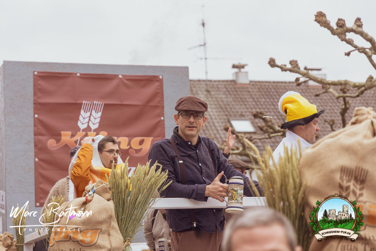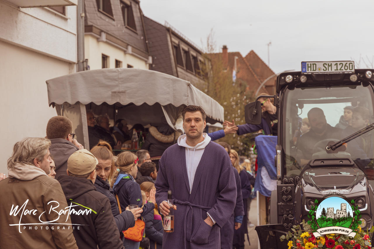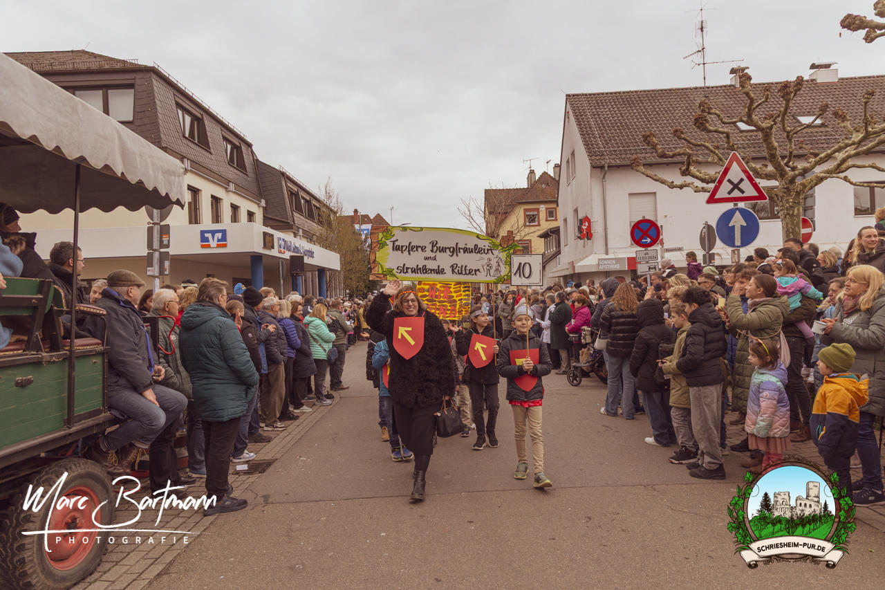 Doch dieses Jahr war alles ein bisschen anders – besser! Der Umzug war lustiger, kreativer und lebendiger als in den Vorjahren. Die Gruppen hatten sichtlich Spaß am Motto „Schriesheimer Wahrzeichen“ und setzten es mit viel Witz und Liebe zum Detail um. Von nachgebauten historischen Gebäuden über humorvolle Interpretationen lokaler Legenden bis hin zu kulinarischen Hommagen an die Region: Hier stimmte einfach alles.