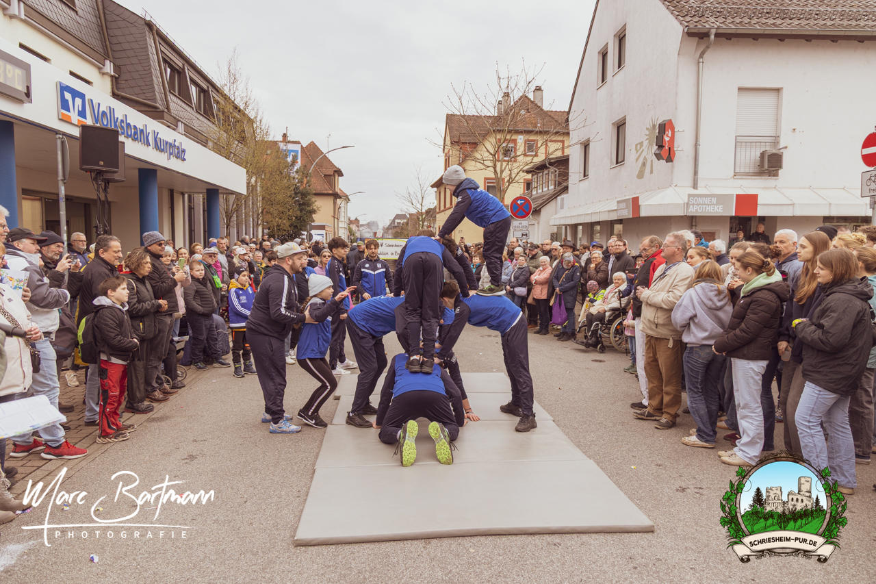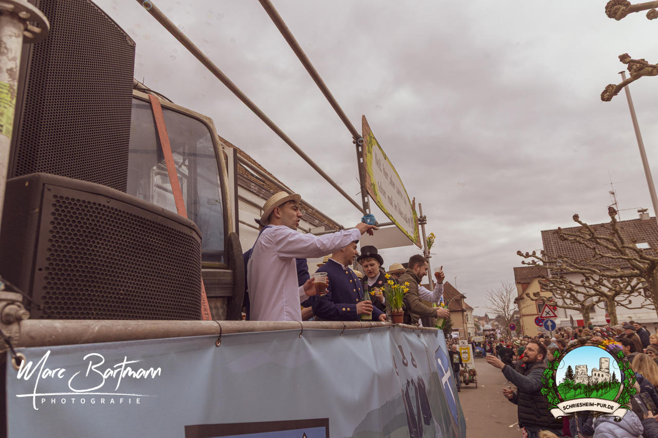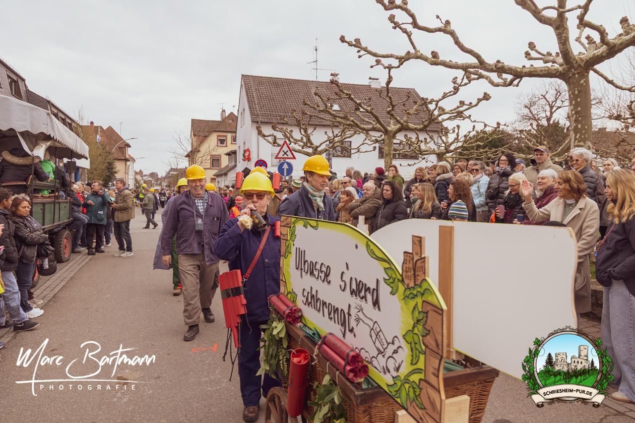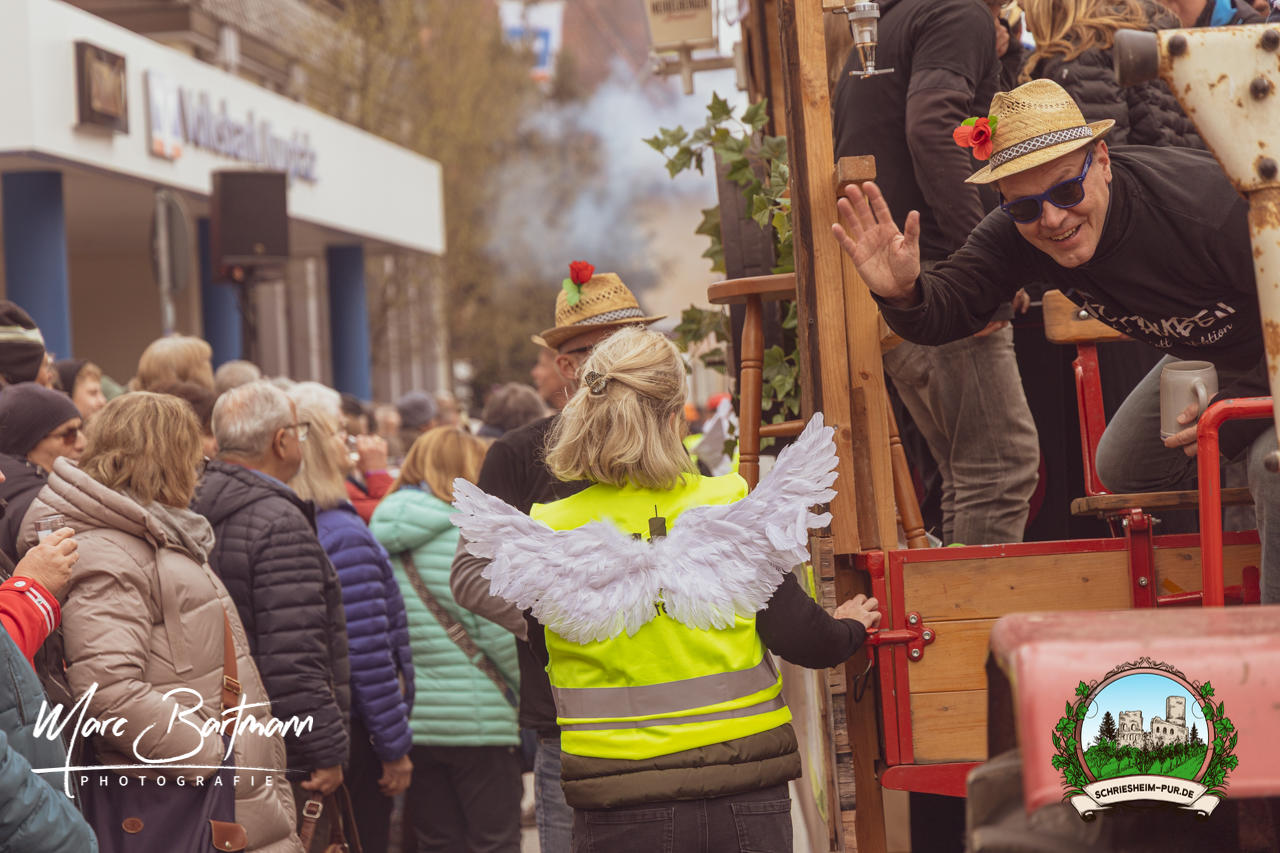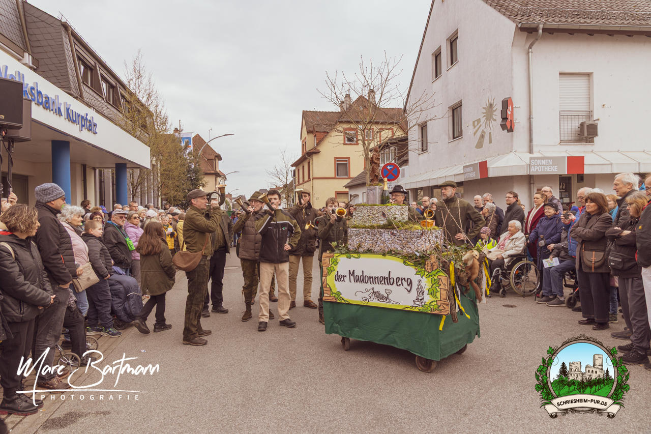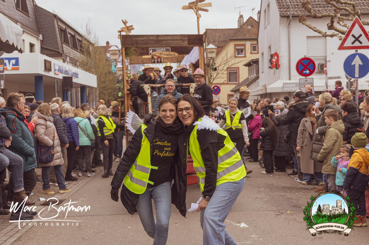Doch dieses Jahr war alles ein bisschen anders – besser! Der Umzug war lustiger, kreativer und lebendiger als in den Vorjahren. Die Gruppen hatten sichtlich Spaß am Motto „Schriesheimer Wahrzeichen“ und setzten es mit viel Witz und Liebe zum Detail um. Von nachgebauten historischen Gebäuden über humorvolle Interpretationen lokaler Legenden bis hin zu kulinarischen Hommagen an die Region: Hier stimmte einfach alles.
