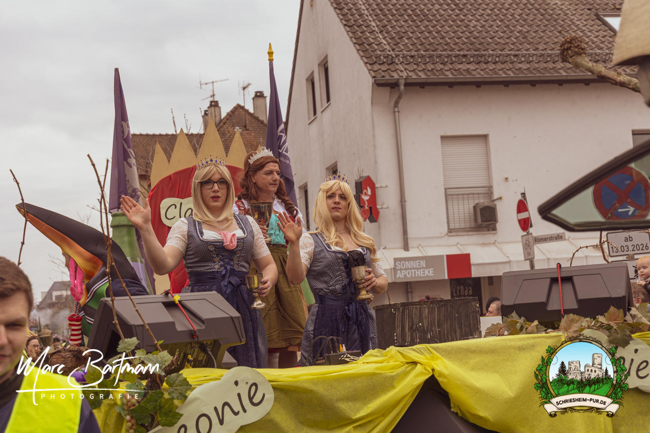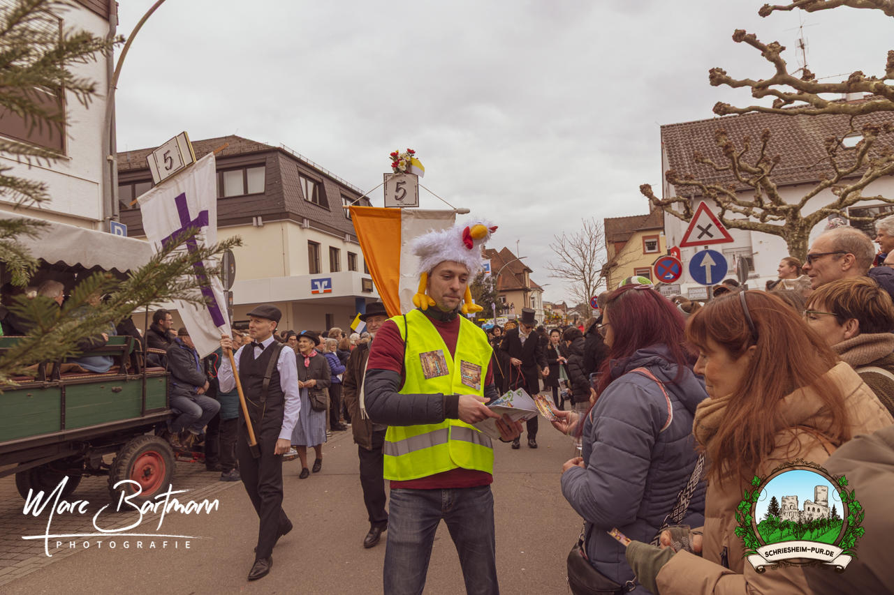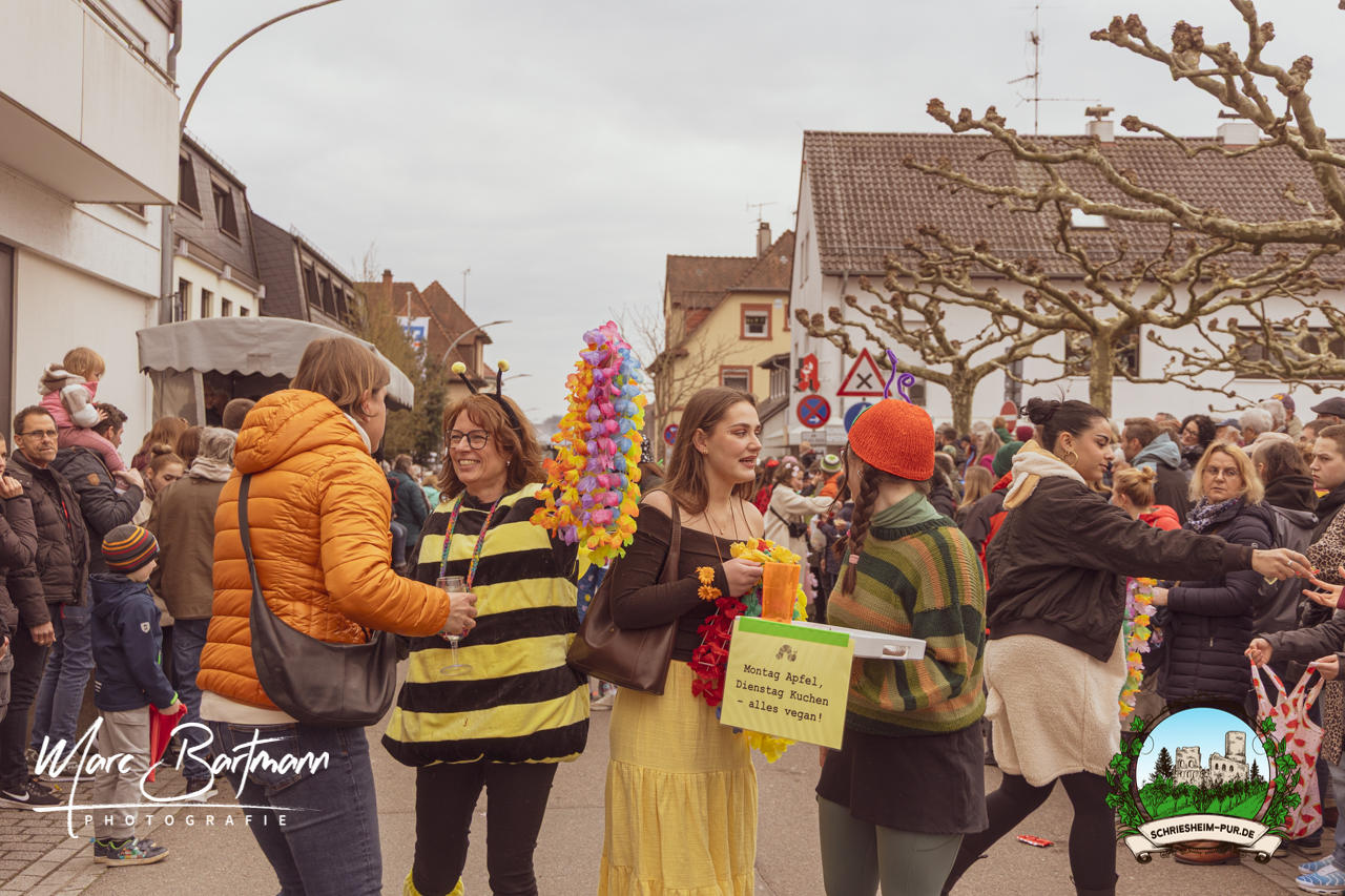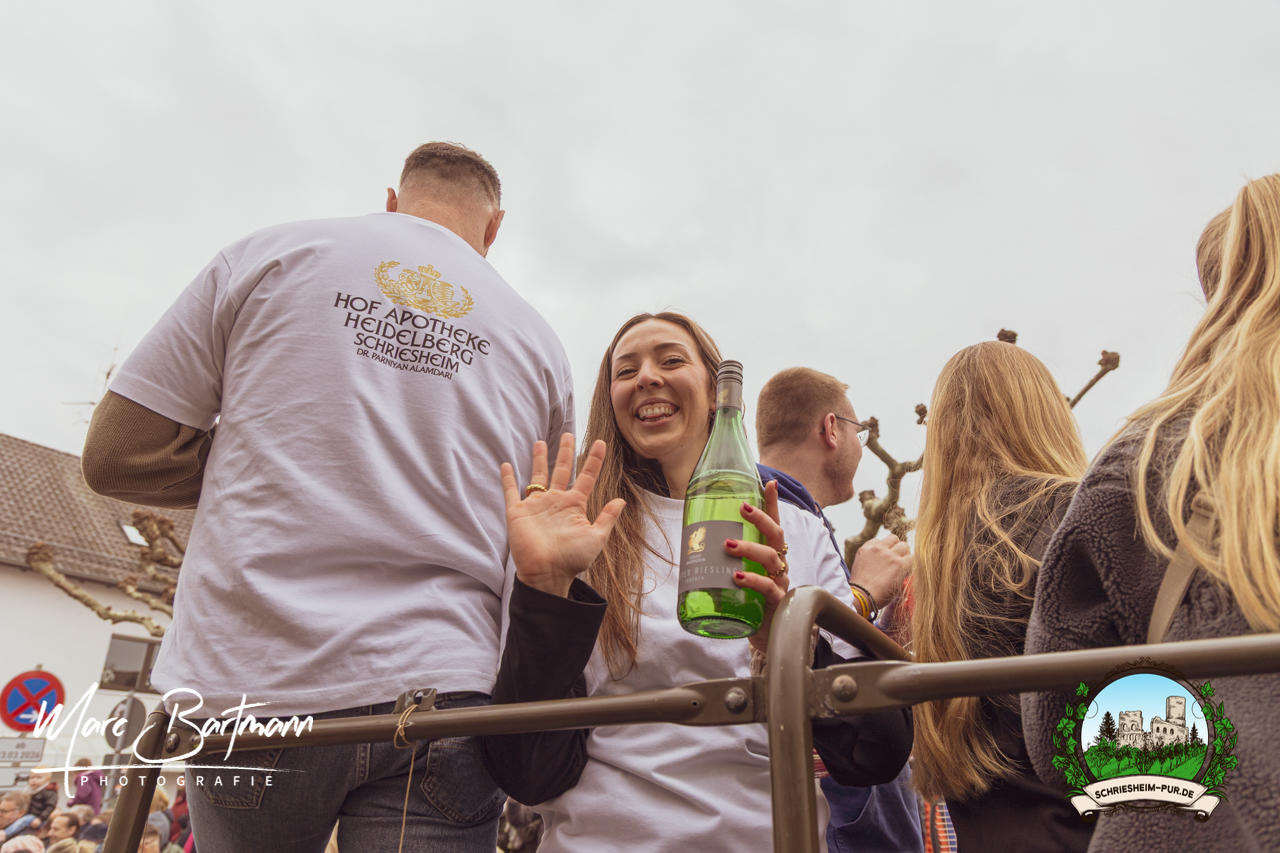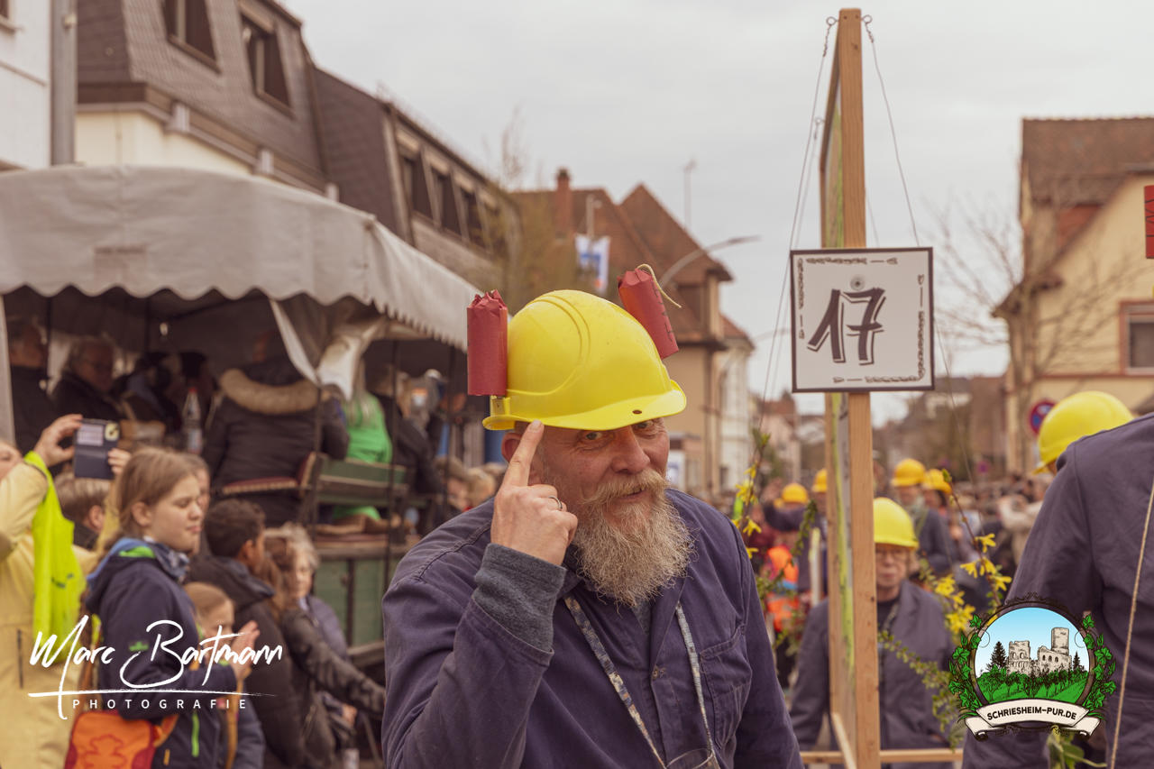 Doch dieses Jahr war alles ein bisschen anders – besser! Der Umzug war lustiger, kreativer und lebendiger als in den Vorjahren. Die Gruppen hatten sichtlich Spaß am Motto „Schriesheimer Wahrzeichen“ und setzten es mit viel Witz und Liebe zum Detail um. Von nachgebauten historischen Gebäuden über humorvolle Interpretationen lokaler Legenden bis hin zu kulinarischen Hommagen an die Region: Hier stimmte einfach alles.