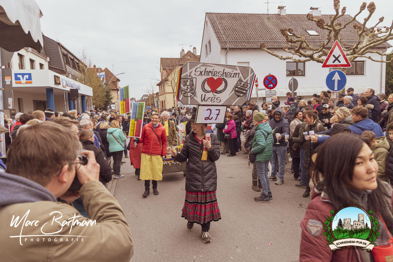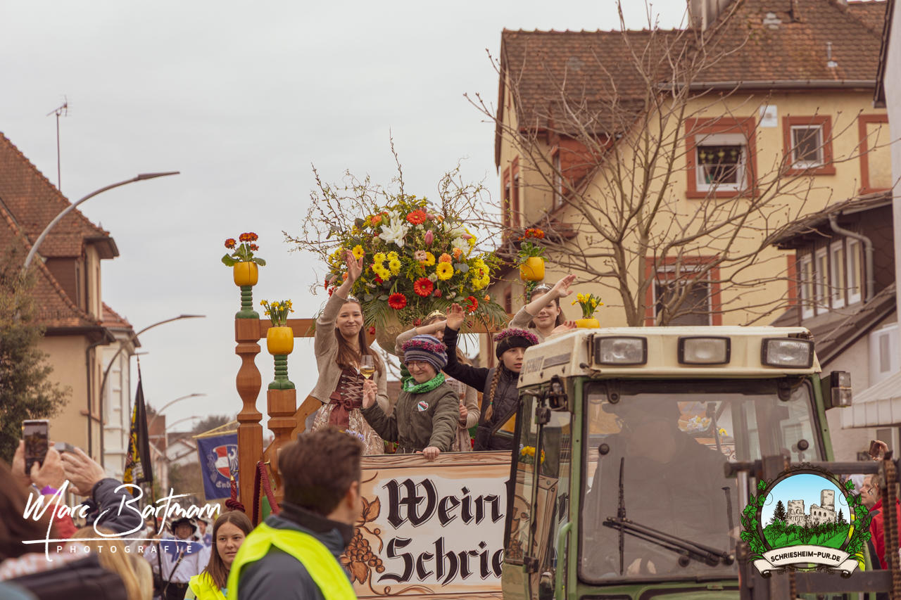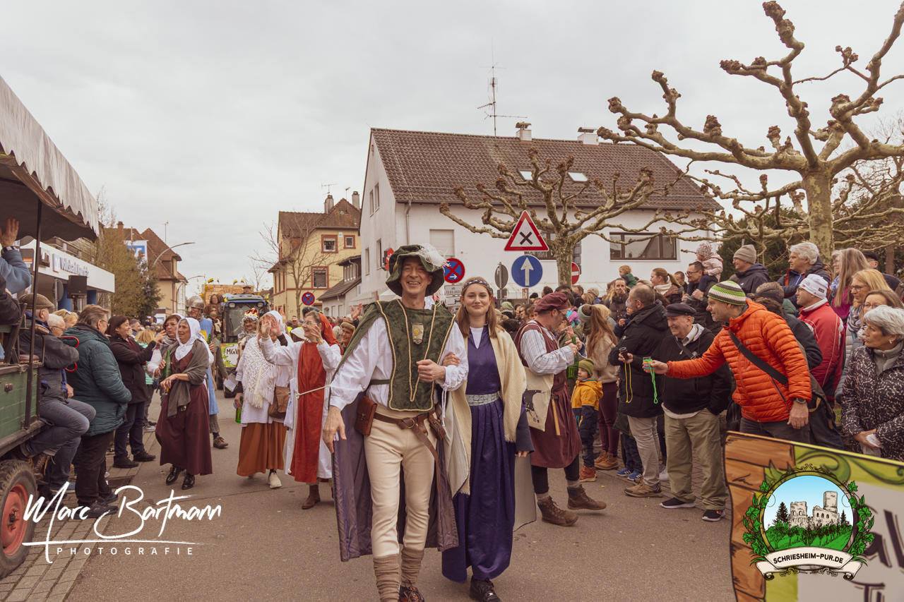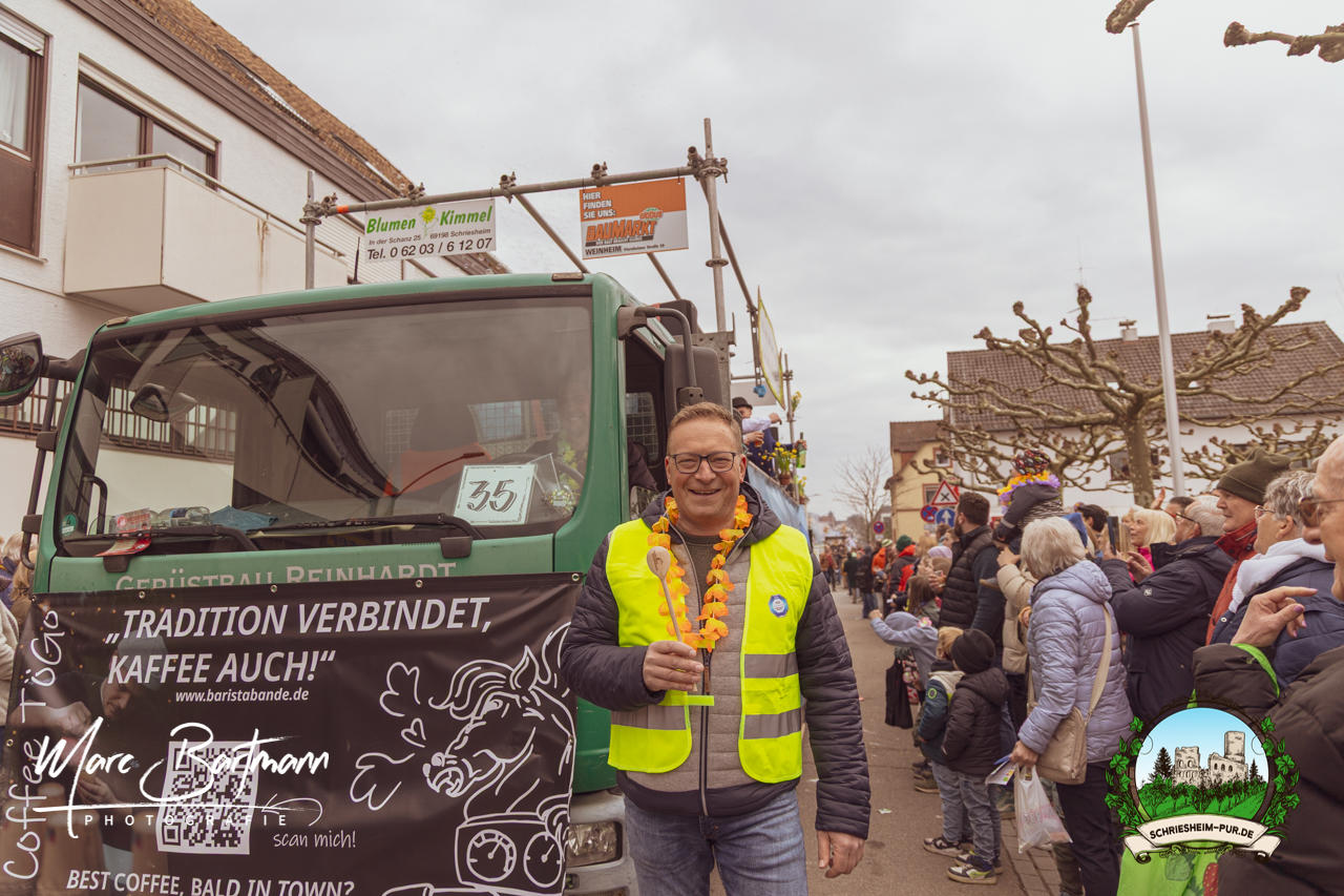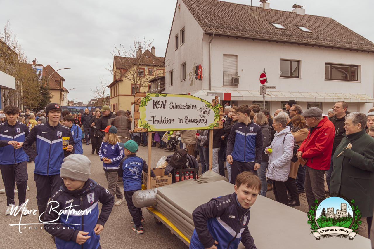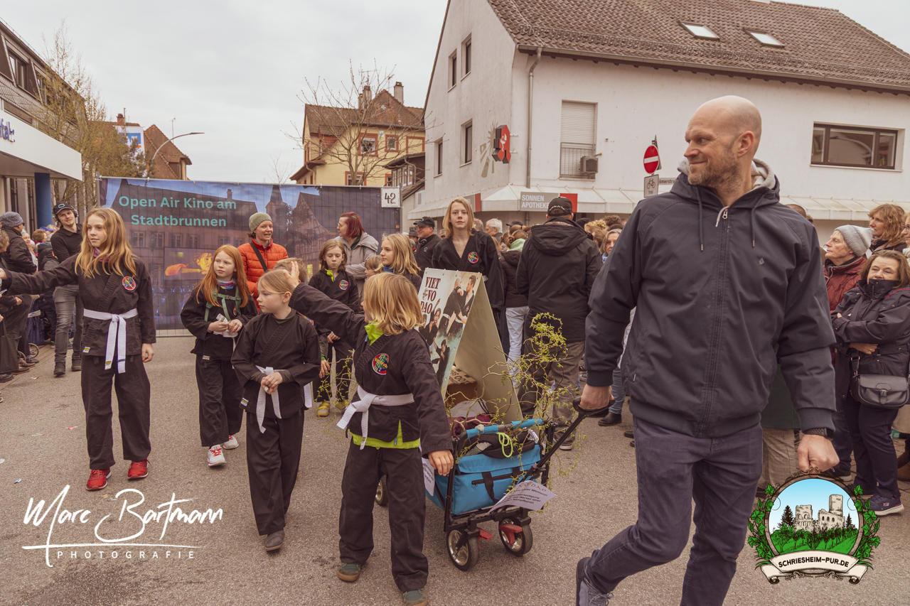 Doch dieses Jahr war alles ein bisschen anders – besser! Der Umzug war lustiger, kreativer und lebendiger als in den Vorjahren. Die Gruppen hatten sichtlich Spaß am Motto „Schriesheimer Wahrzeichen“ und setzten es mit viel Witz und Liebe zum Detail um. Von nachgebauten historischen Gebäuden über humorvolle Interpretationen lokaler Legenden bis hin zu kulinarischen Hommagen an die Region: Hier stimmte einfach alles.