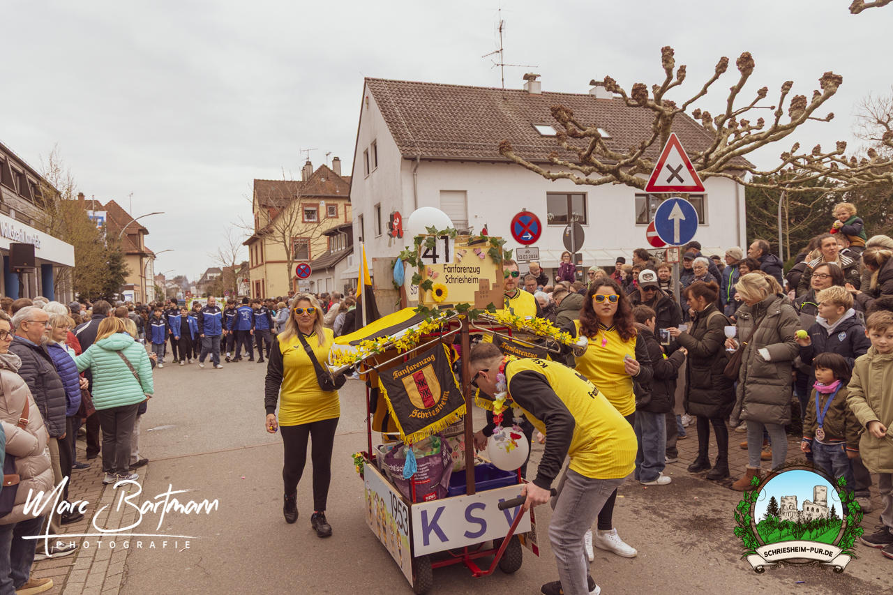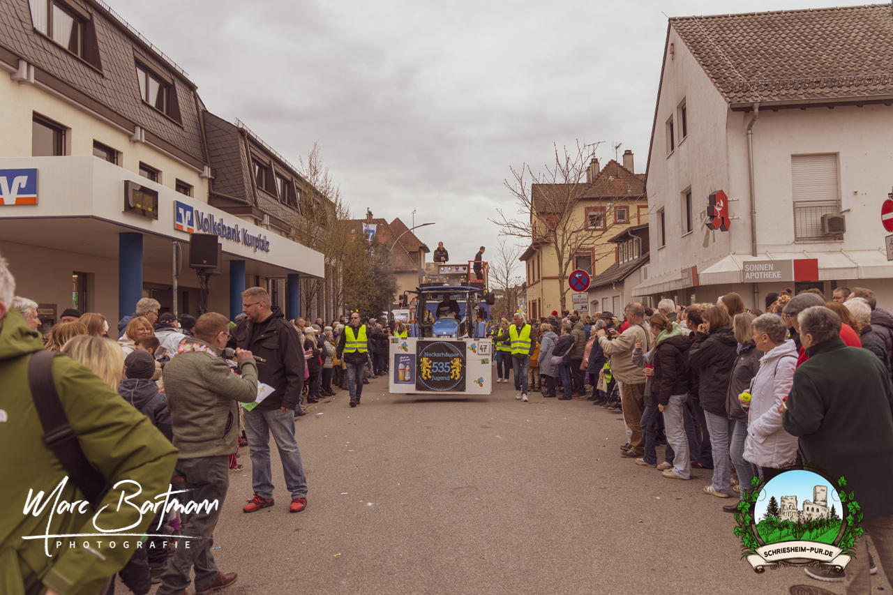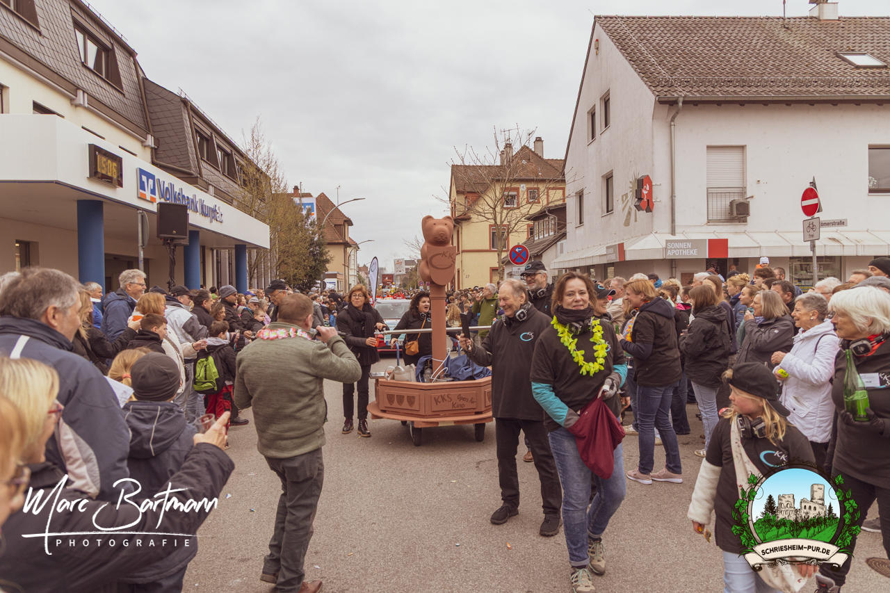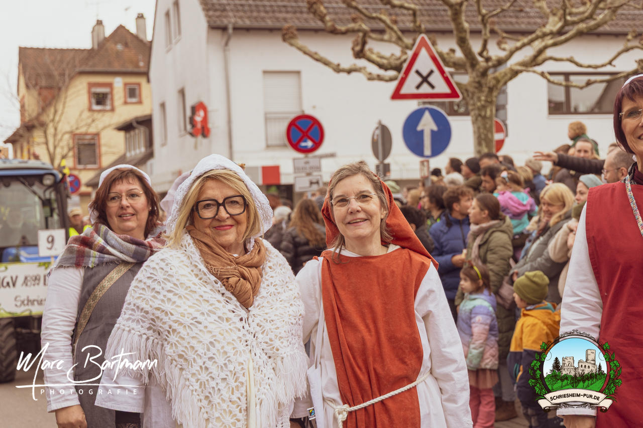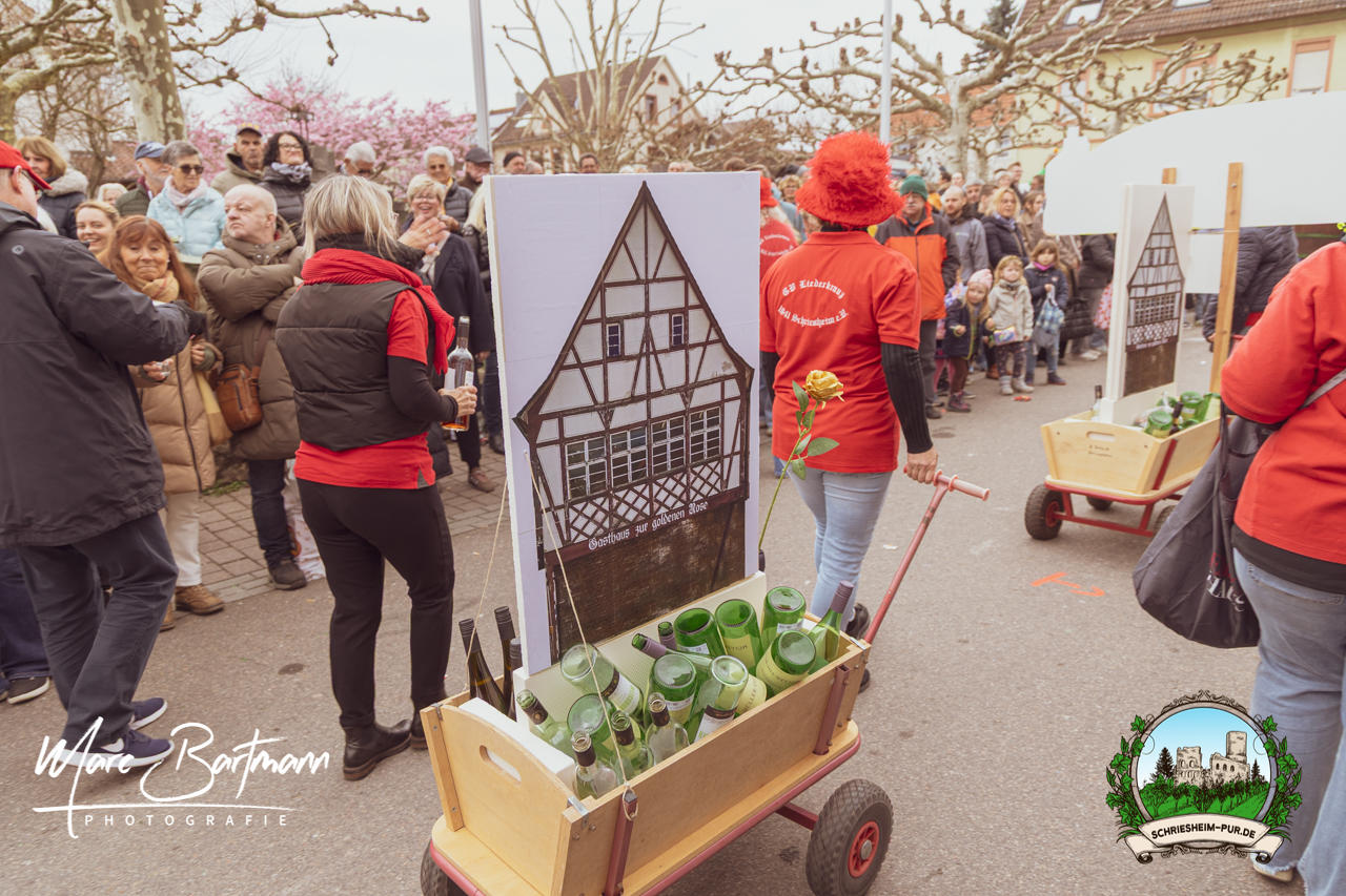 Doch dieses Jahr war alles ein bisschen anders – besser! Der Umzug war lustiger, kreativer und lebendiger als in den Vorjahren. Die Gruppen hatten sichtlich Spaß am Motto „Schriesheimer Wahrzeichen“ und setzten es mit viel Witz und Liebe zum Detail um. Von nachgebauten historischen Gebäuden über humorvolle Interpretationen lokaler Legenden bis hin zu kulinarischen Hommagen an die Region: Hier stimmte einfach alles.